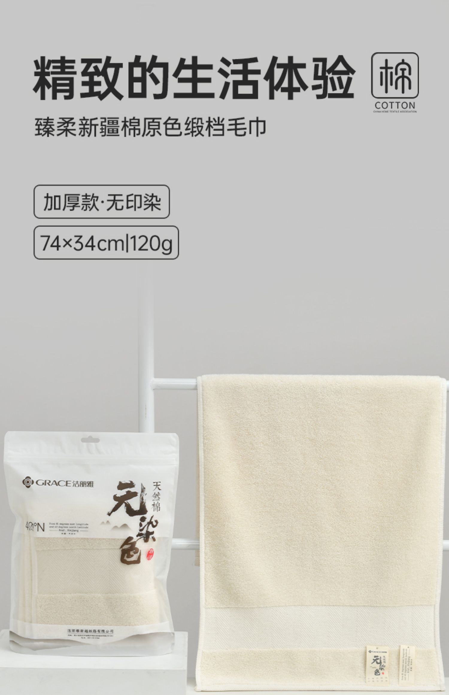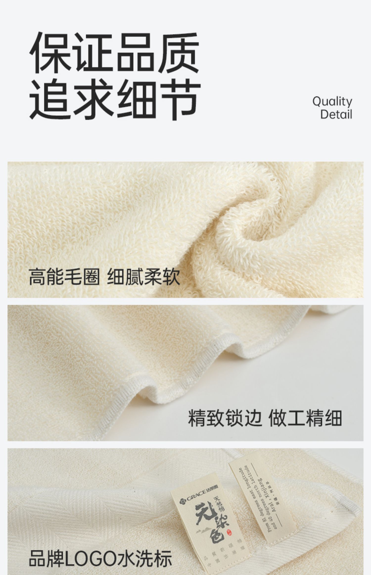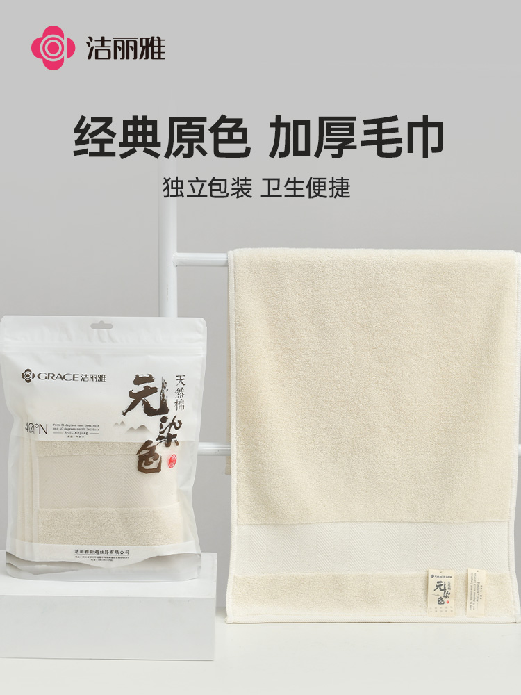 洁丽雅原色纯棉毛巾原棉零染色2025年新款家用洗脸毛巾男士面巾女