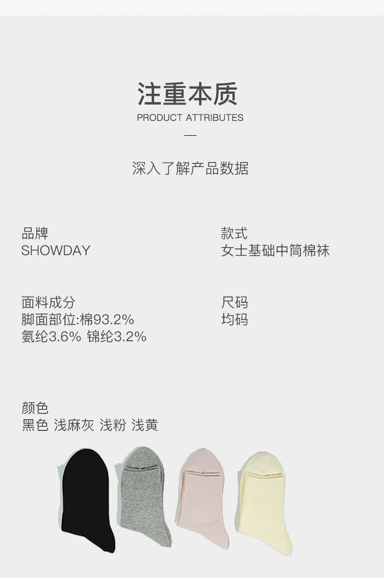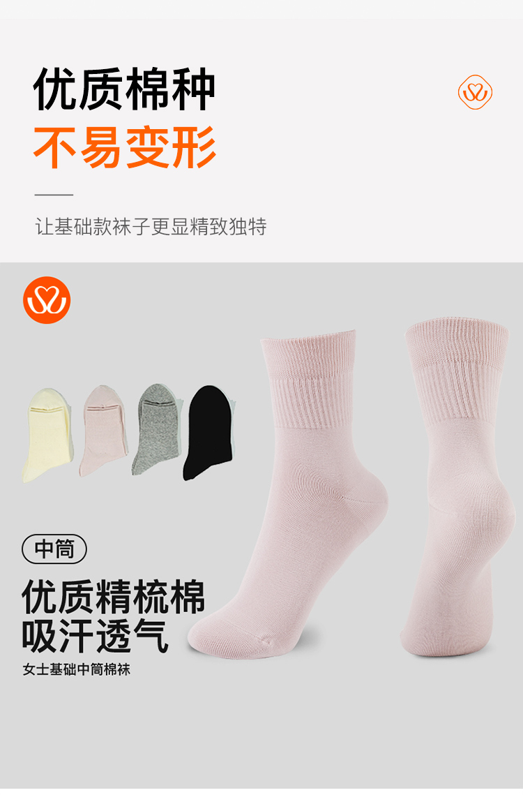 女士基础中筒棉袜