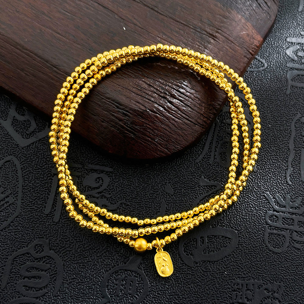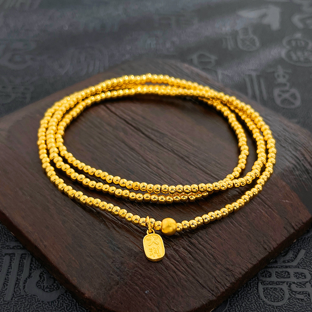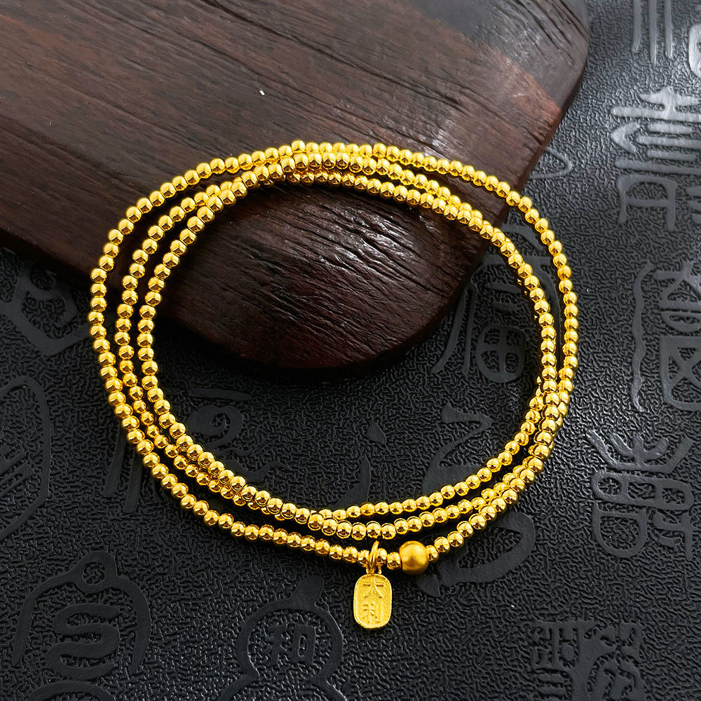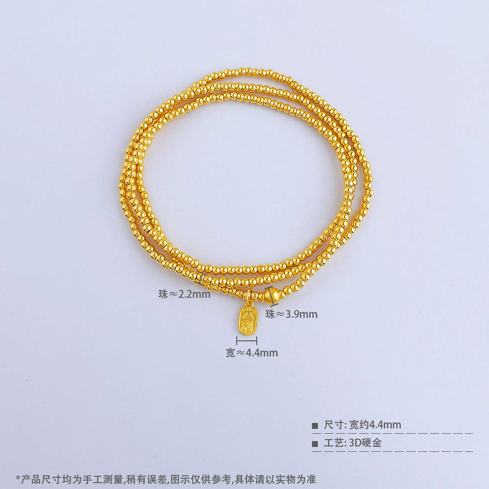 【限时克减150元】足金 #祈福 【精品】3D硬金空心大吉大利吊饰三圈幸运手串圆珠弹力绳成品手串(AK3DSC00021)(预售产品下单后不退款不退货不换货不补差价)
