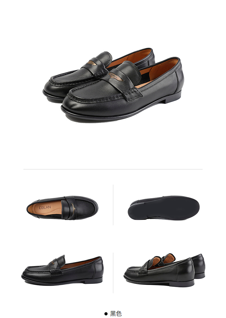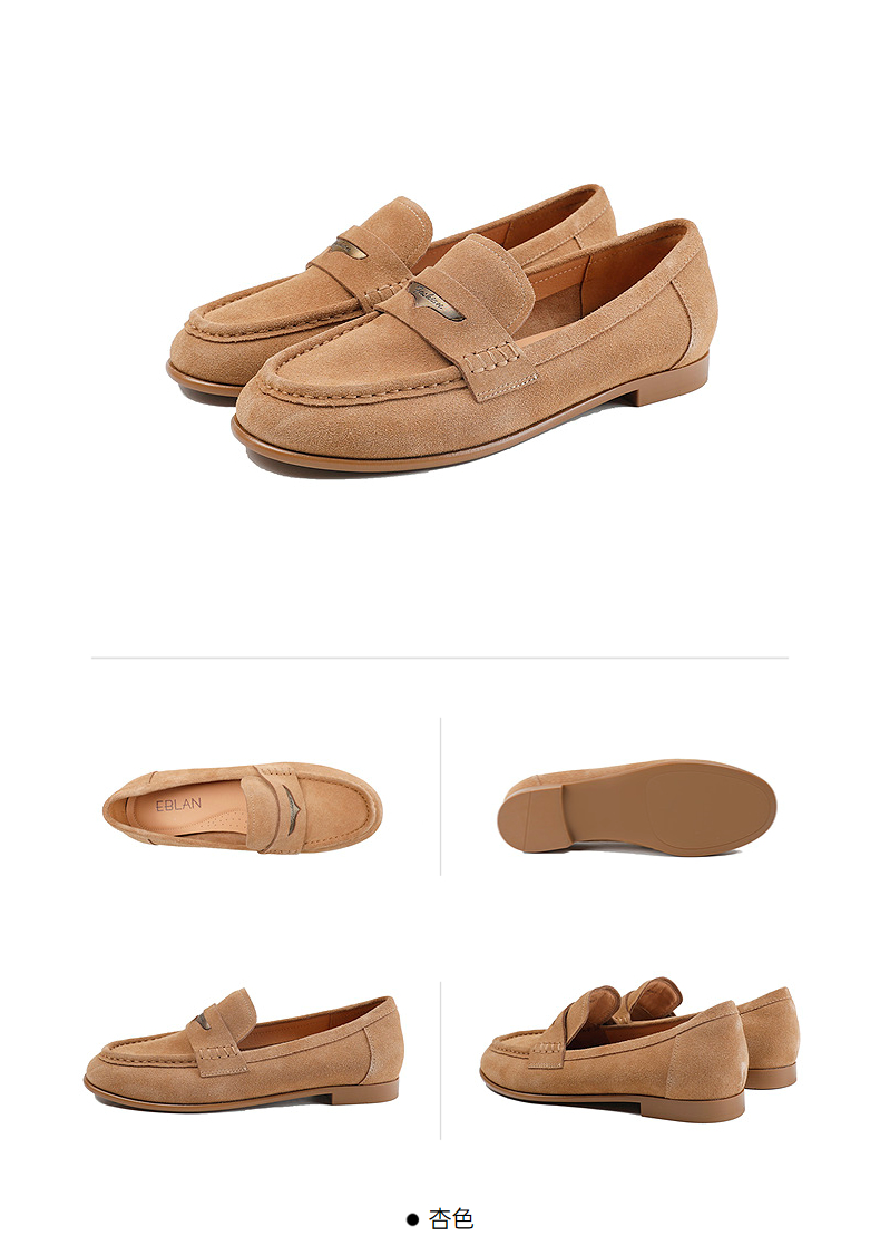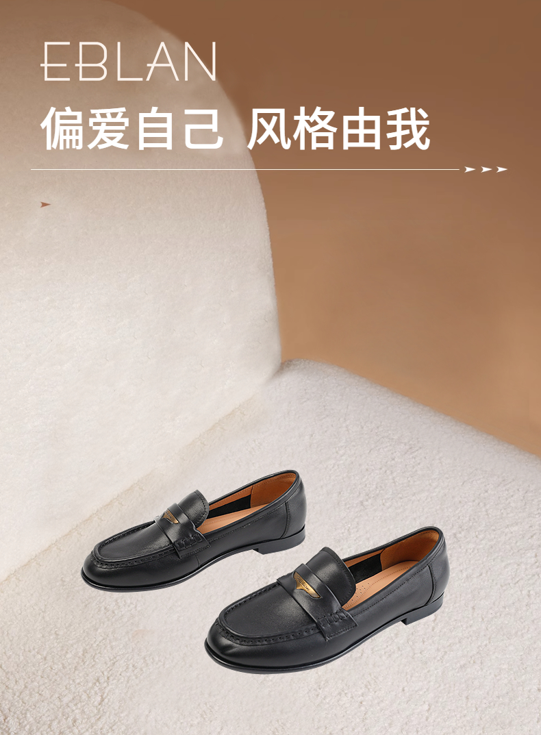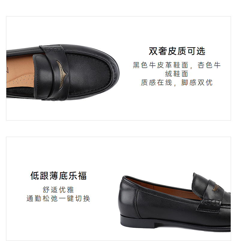伊伴2026春季经典百搭通勤透气真皮薄底便士乐福鞋B26137082