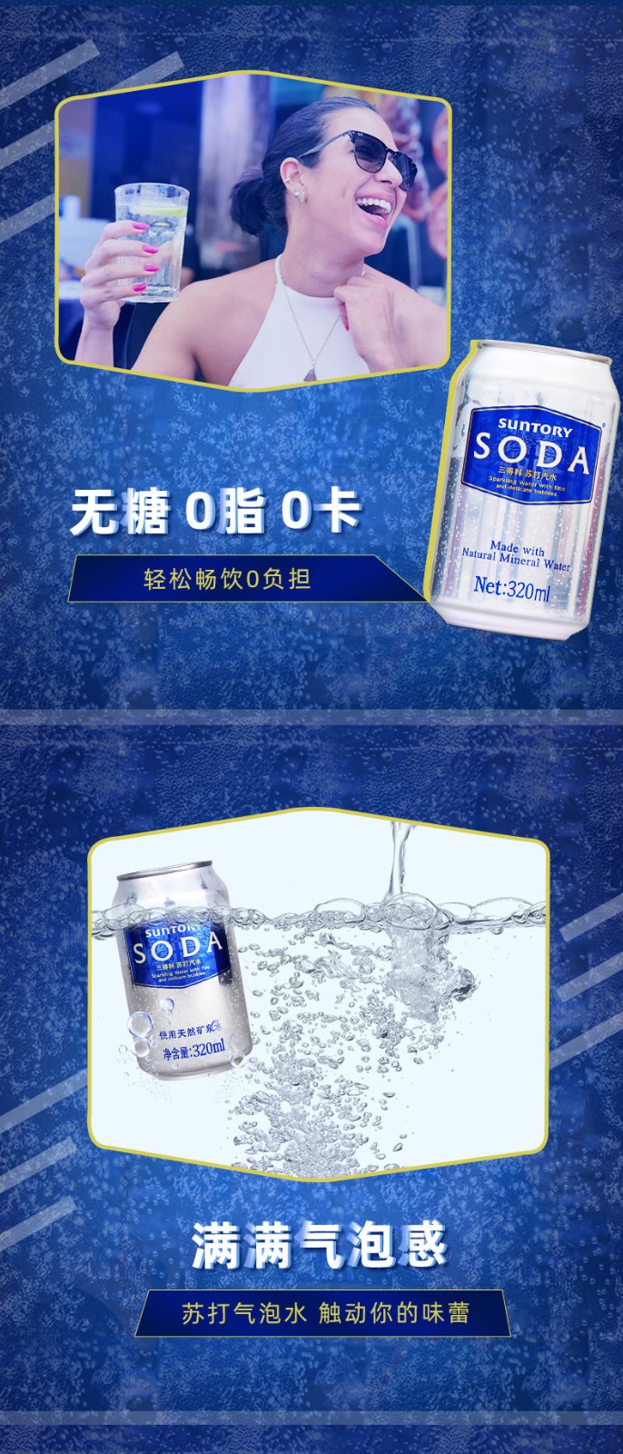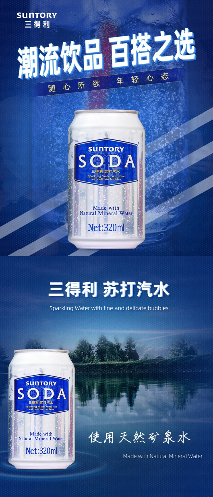 三得利苏打汽水320ml/023556 含气苏打水满满气泡感口感自然清爽