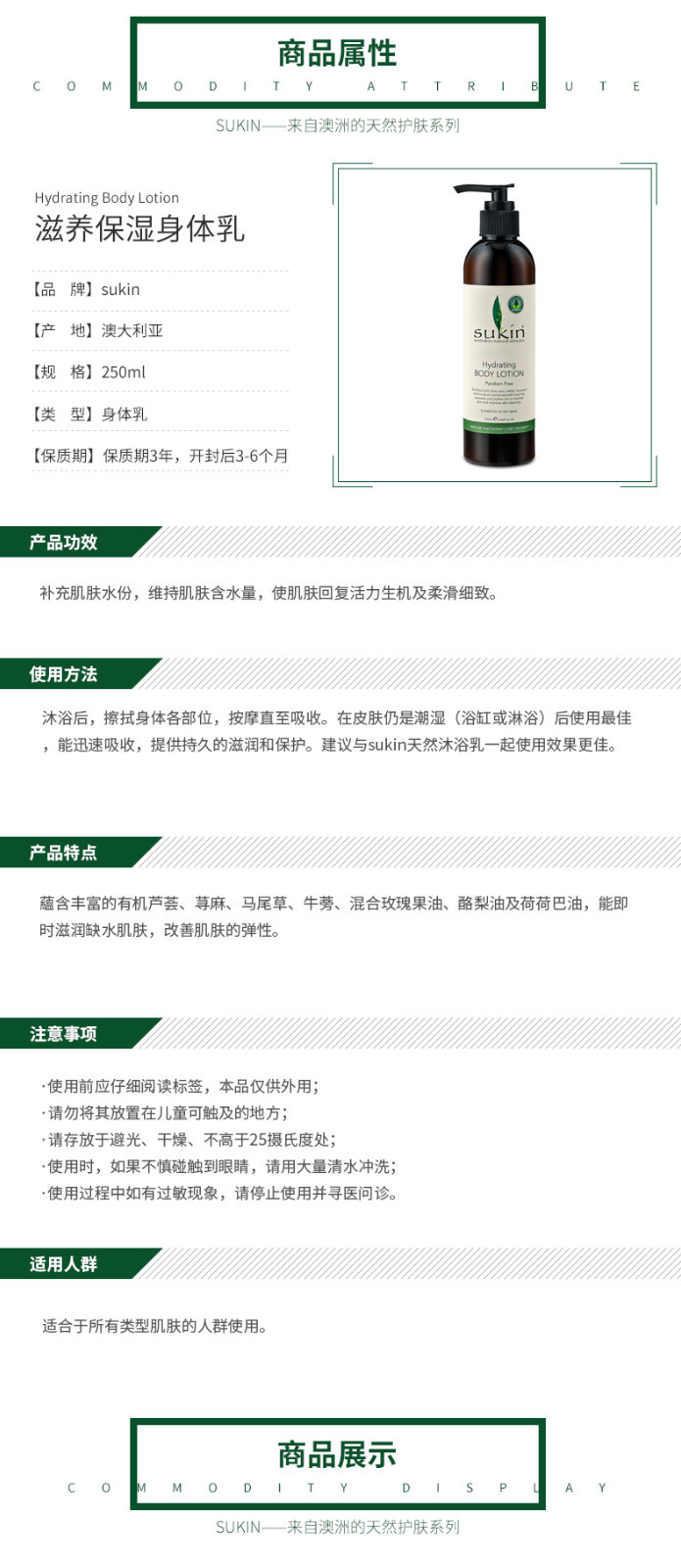 【保税仓】SUKIN/苏芊 滋养保湿身体乳 Hydrating Body Lotion 250ml