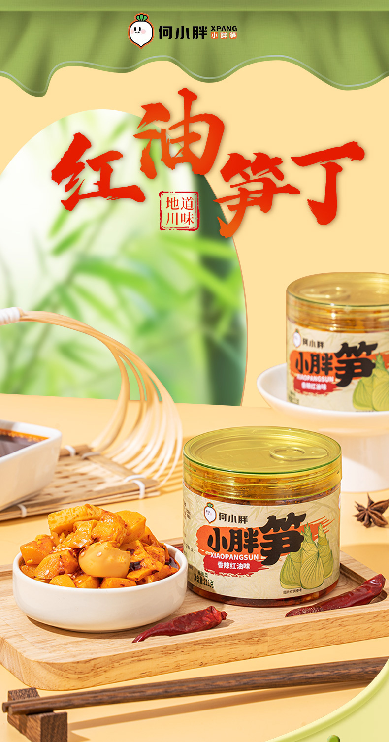 【何小胖小胖笋】红油嫩笋香辣笋丁即食下饭菜竹笋咸菜爽脆鲜嫩麻辣