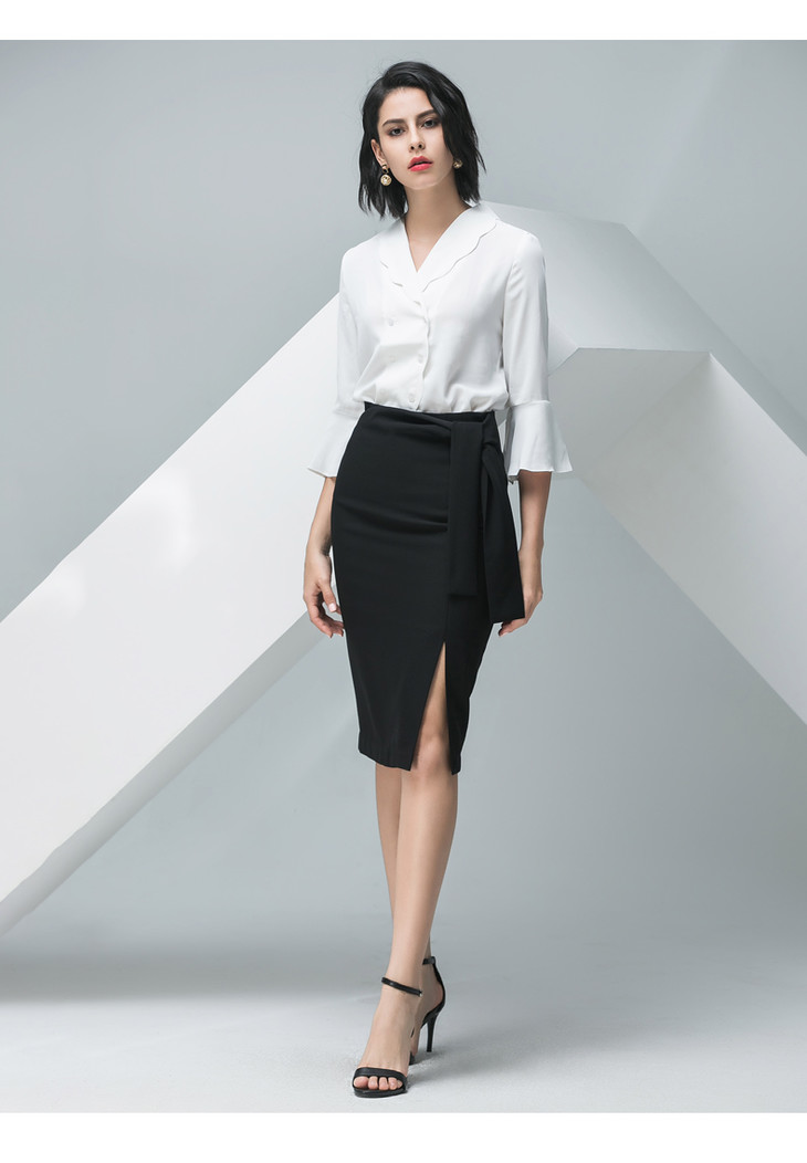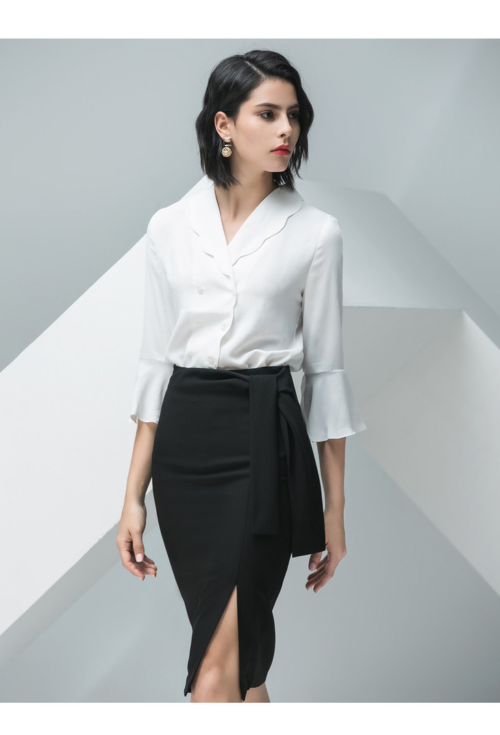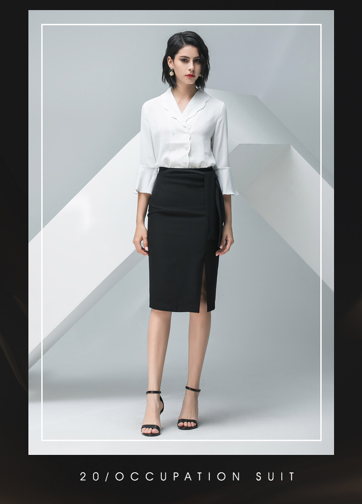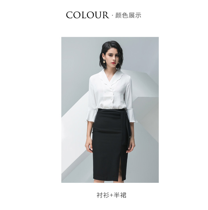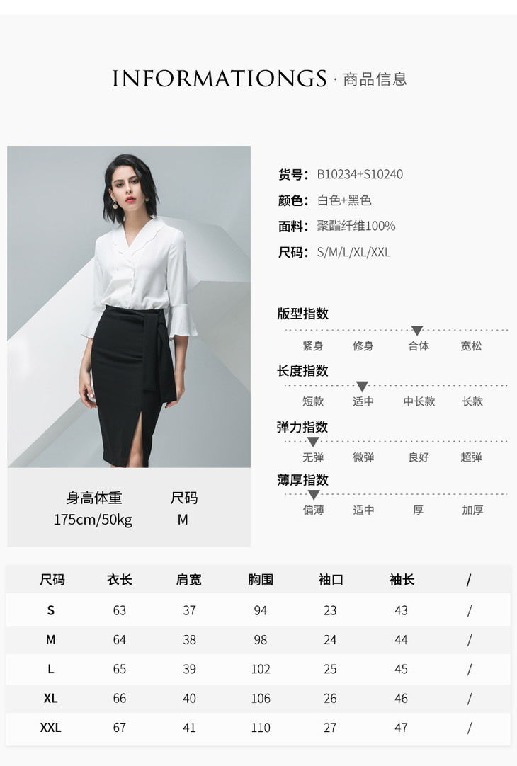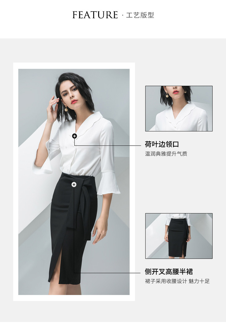 IWY/白色短袖衬衫黑色半裙套装B10234+S10240