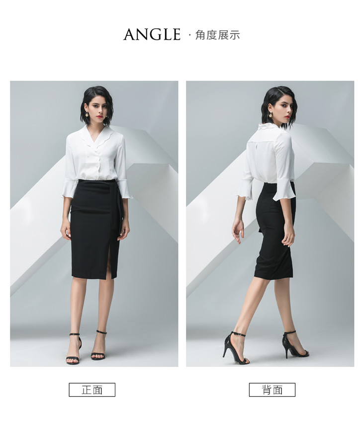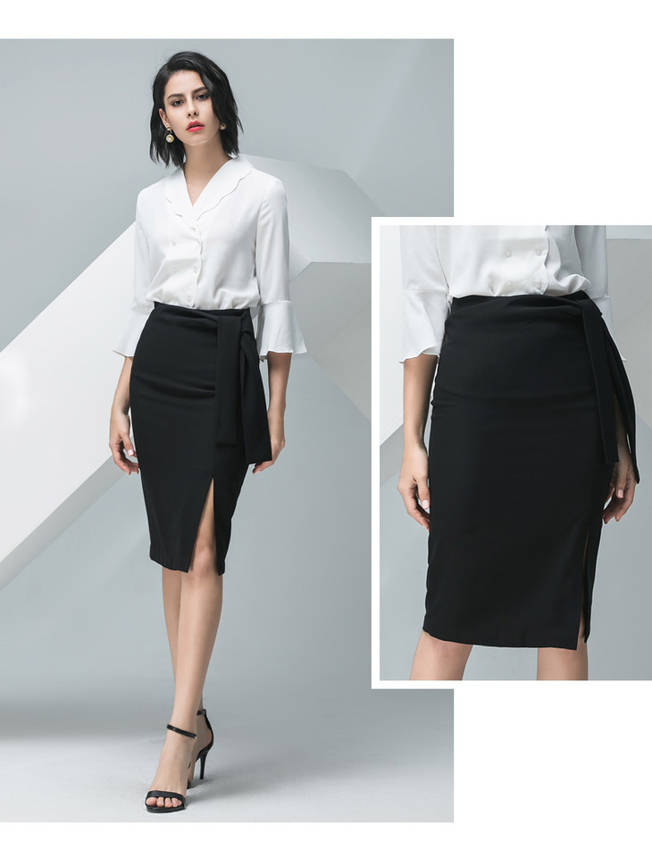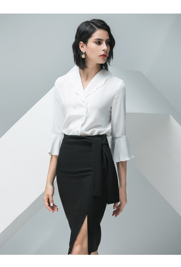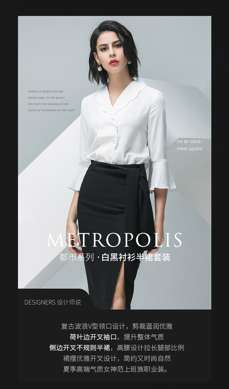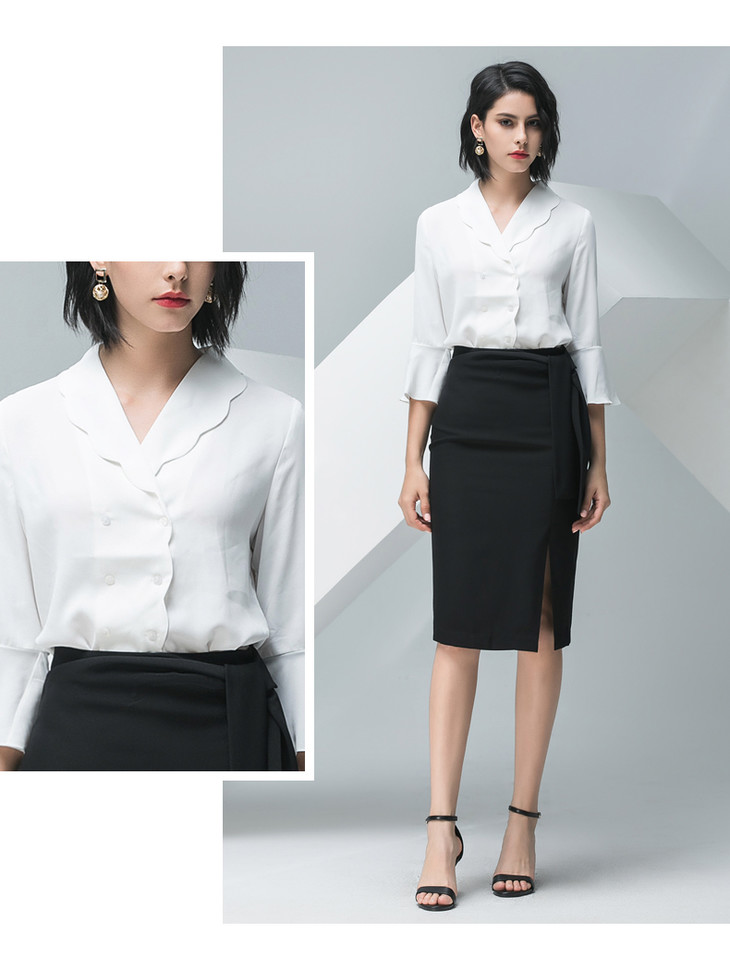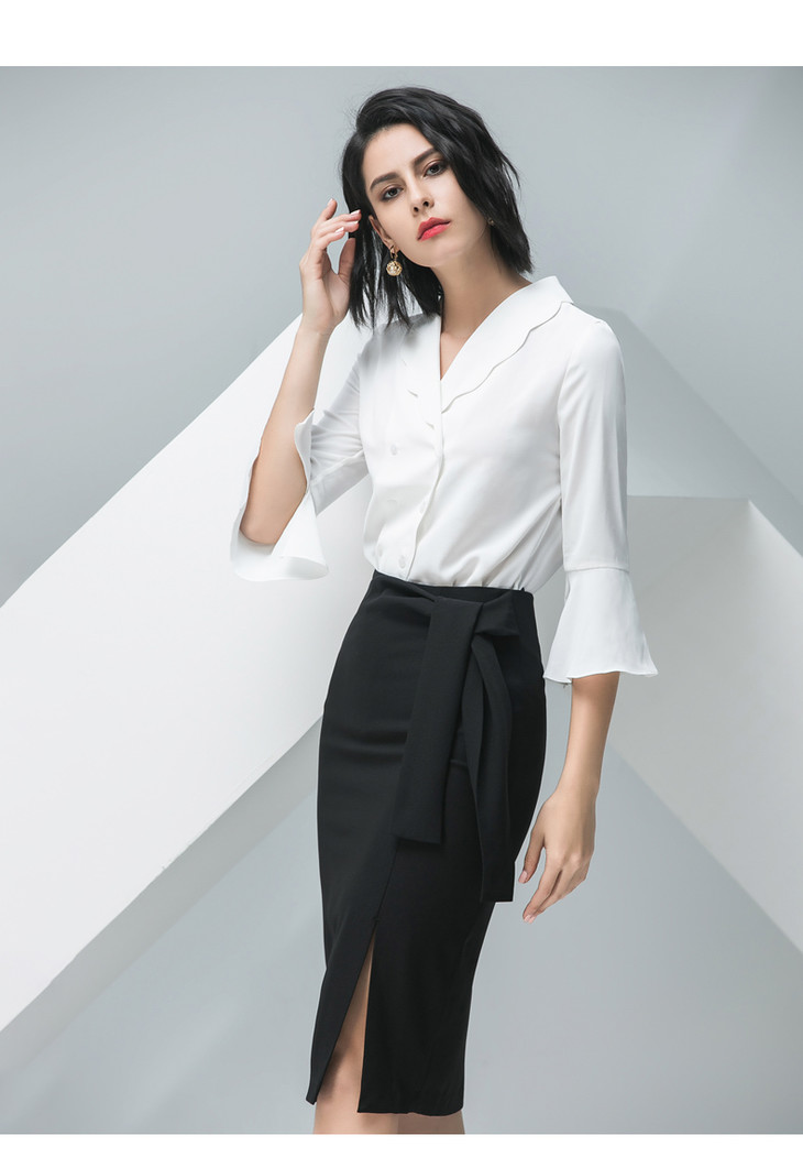 IWY/白色短袖衬衫黑色半裙套装B10234+S10240
