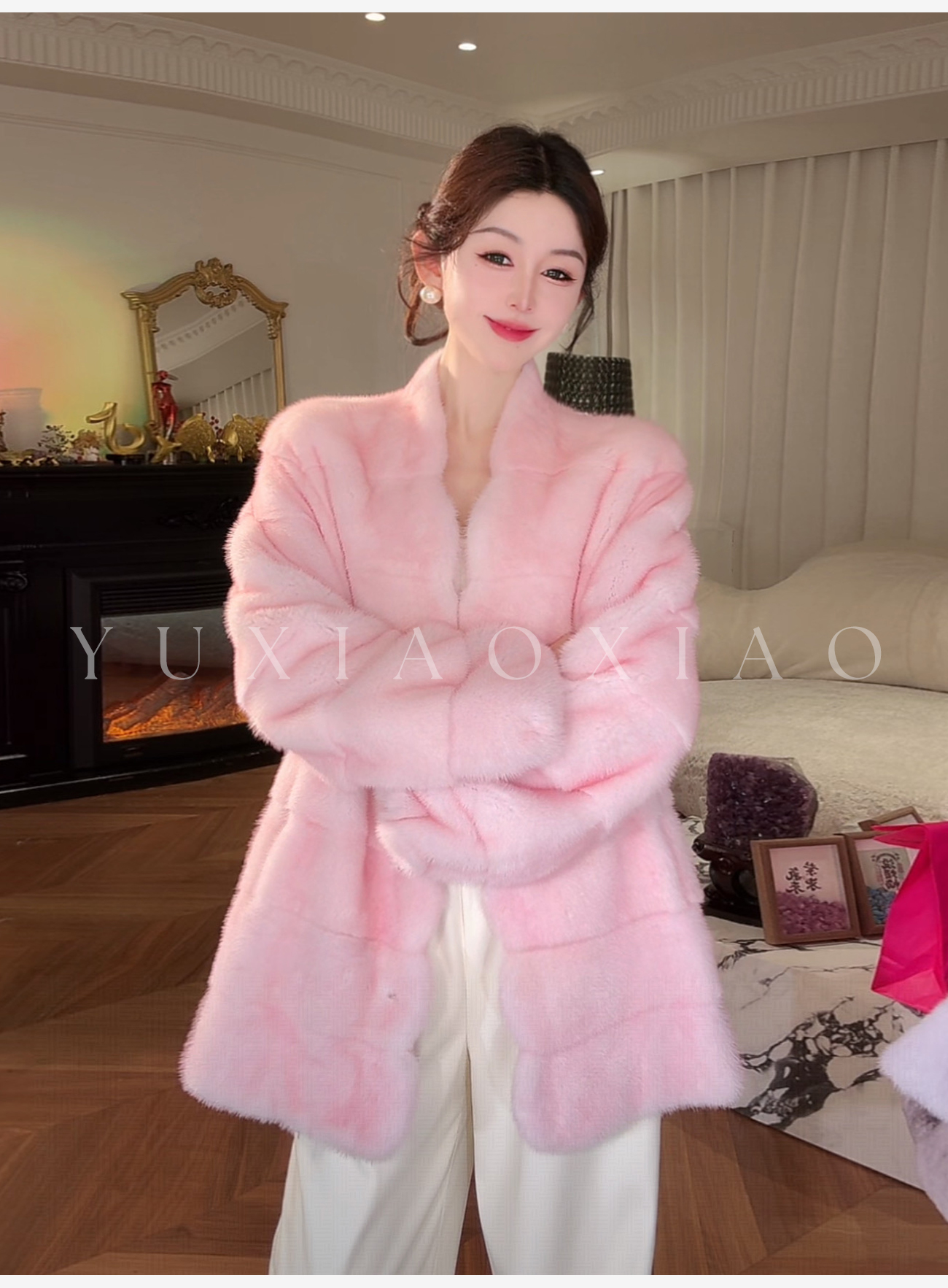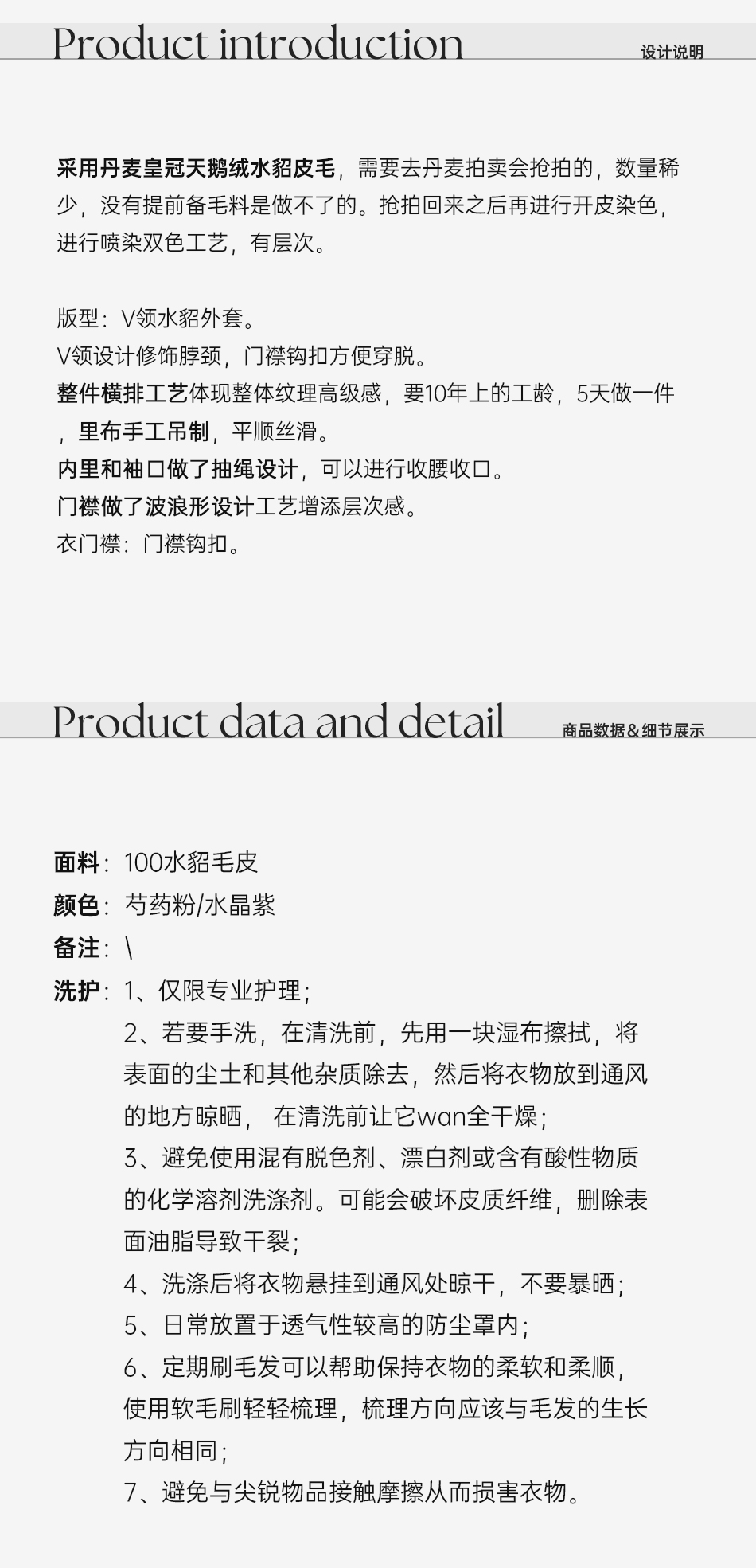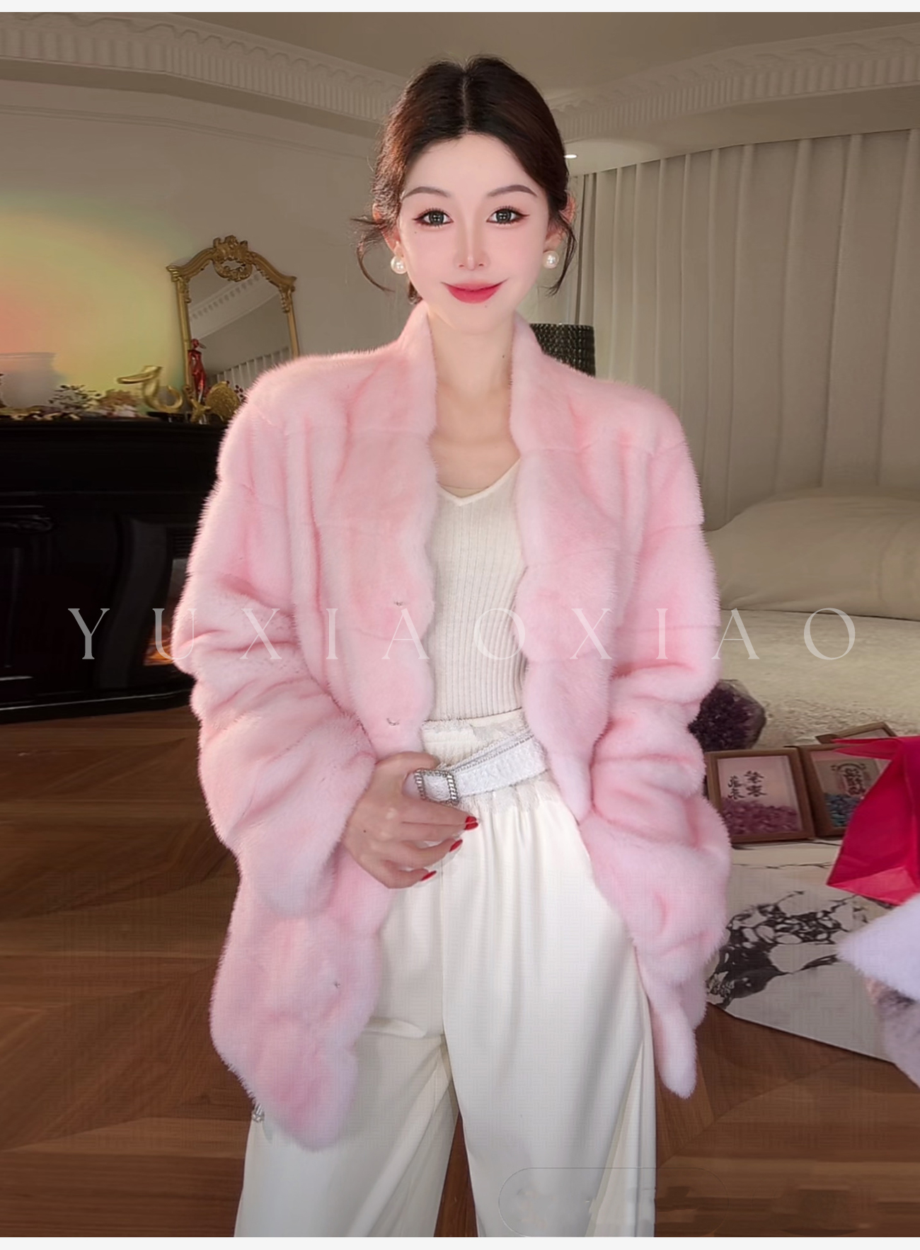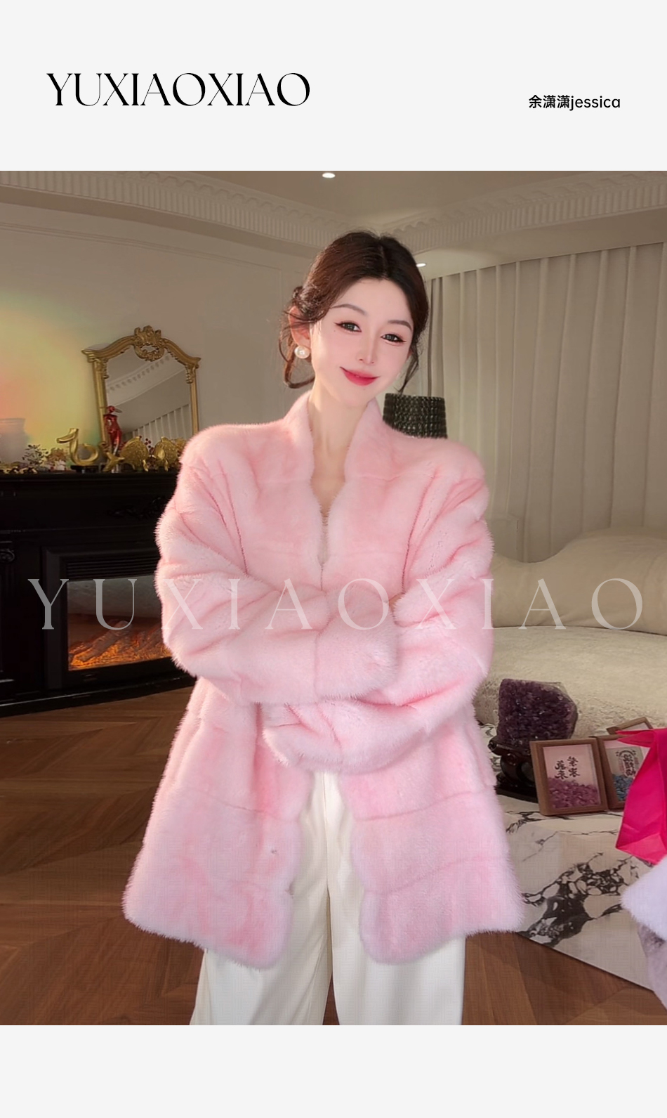 余潇潇【智性美人】高级定制色100天鹅绒水貂内里桑蚕丝V领水貂外套
