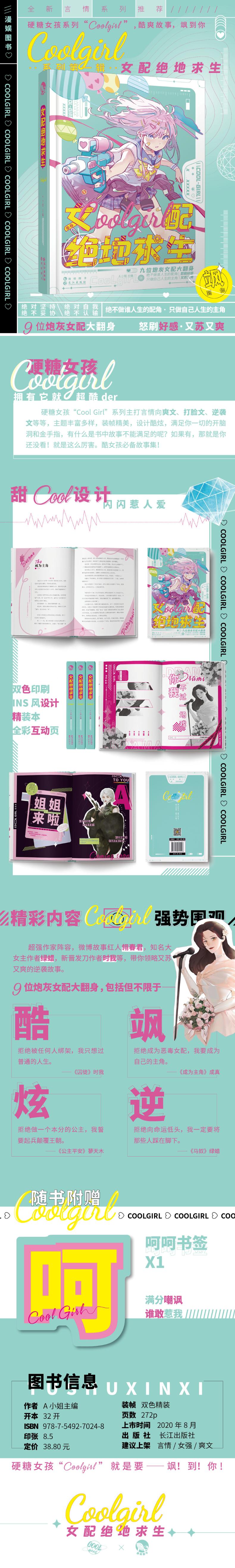 Coolgirl系列第一辑 《女配绝地求生》绝不做谁人生的配角,只做自己人生的主角。(立体封)绝对坚持,绝对自我,绝不妥协,绝不认输!九位炮灰女配大翻身,怒刷好感,又苏又爽!硬糖女孩“Coolgirl”,拥有它就超酷der硬糖女孩“Cool Girl”系列主打言情向爽文、打脸文、逆袭文等等,主题丰富多样,装帧精美,设计酷炫,满足你一切的开脑洞和金手指,有什么是书中故事不能满足的呢?如果有,那就是你还没看!就是这么厉害。酷女孩推荐故事集!
