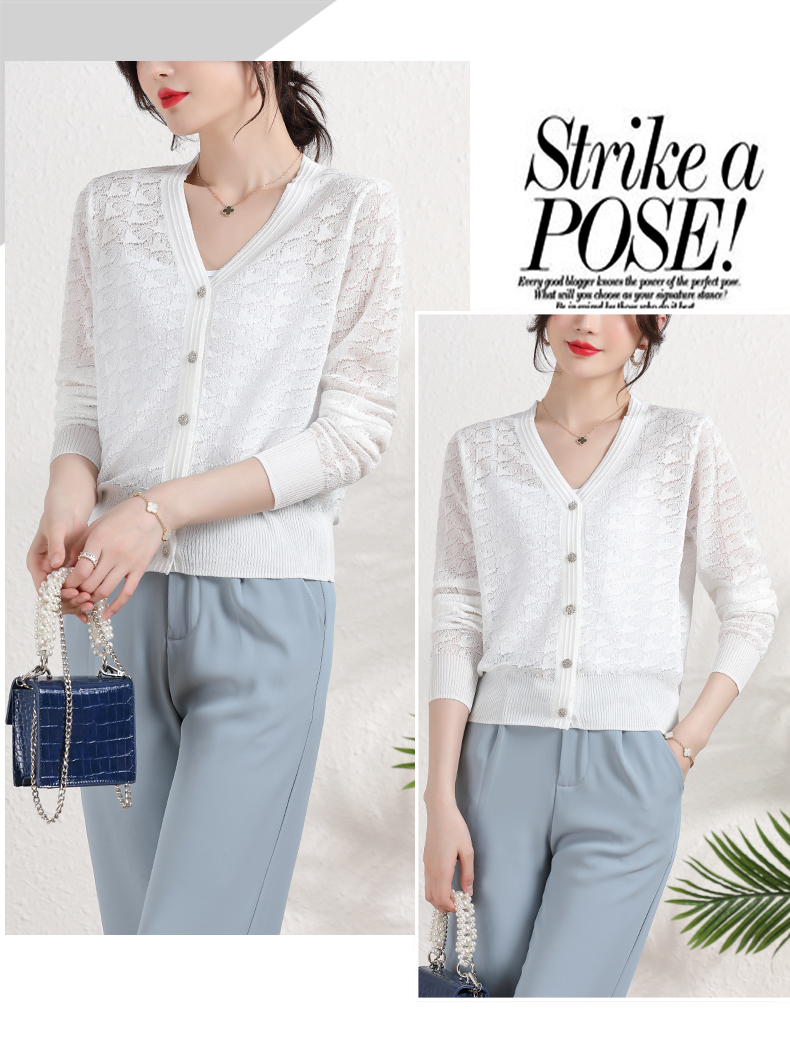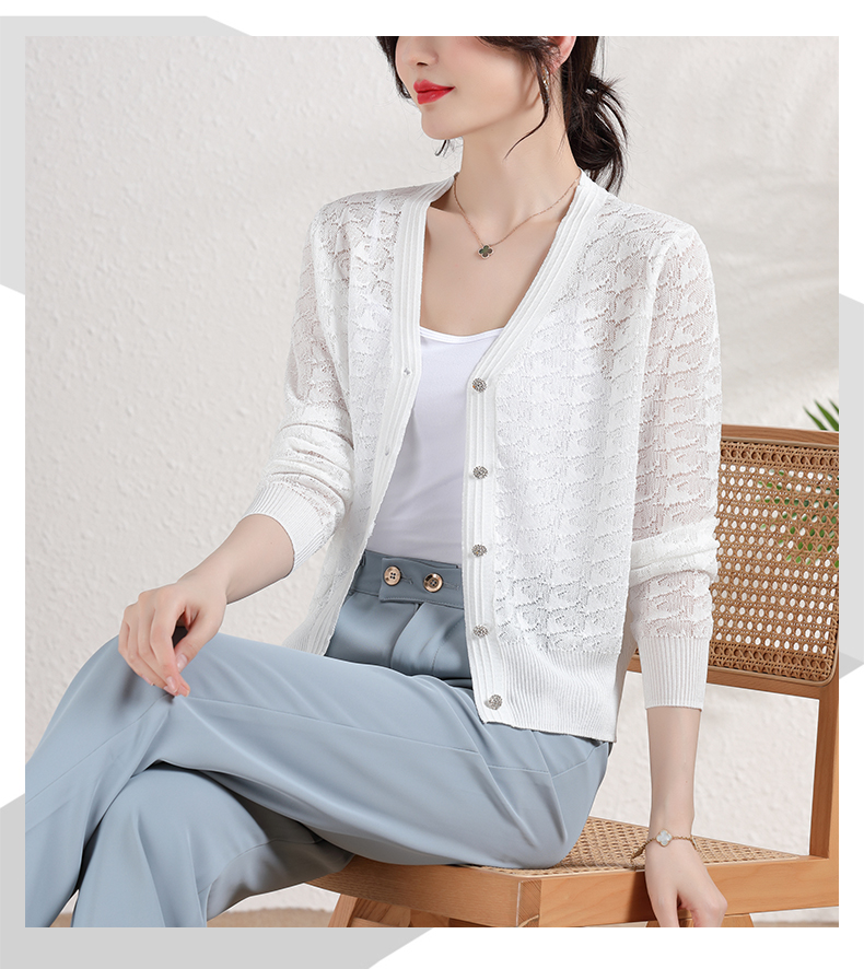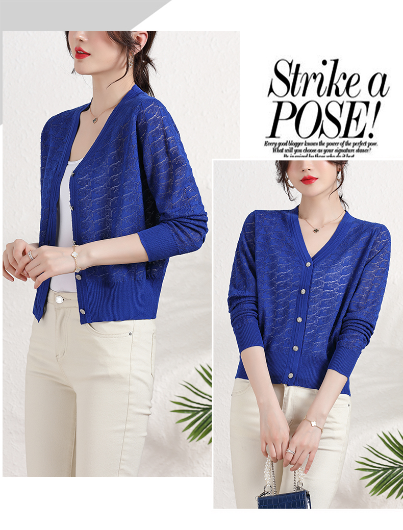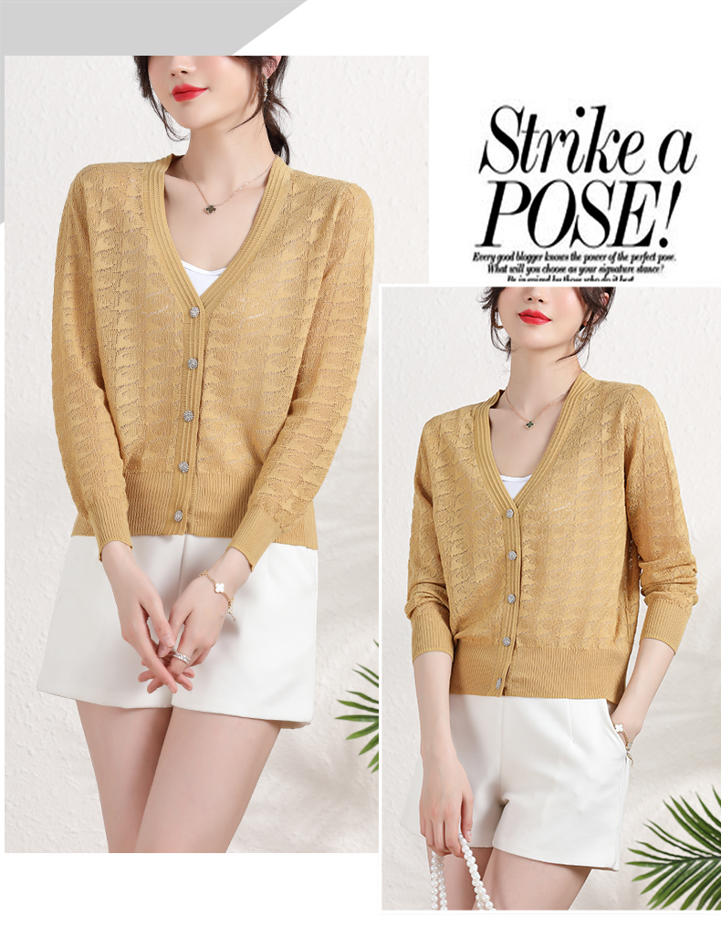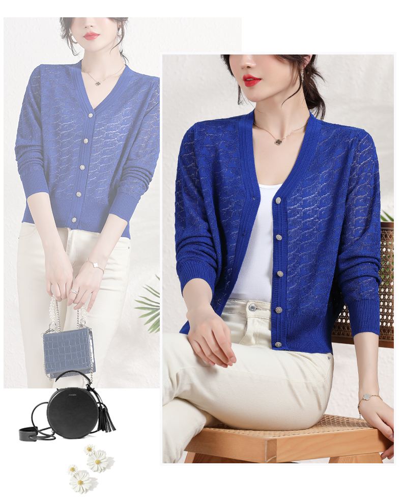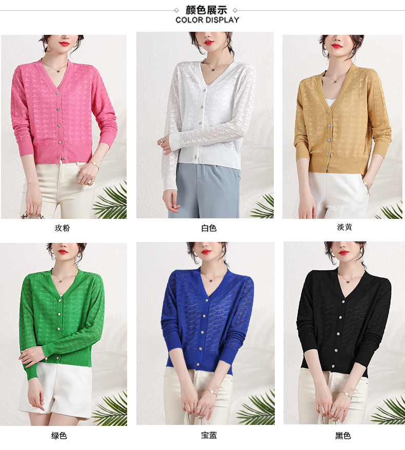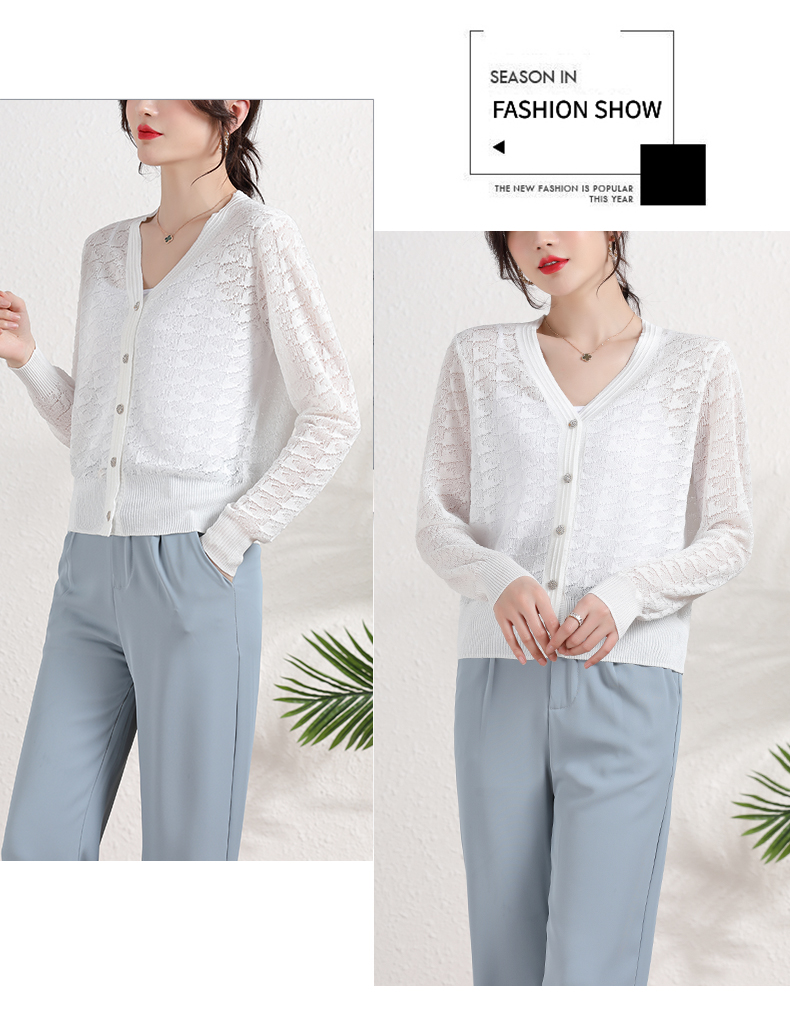 夏季薄款冰丝针织衫,防晒开衫外搭短款配吊带裙子的外套披肩镂空CC-2358