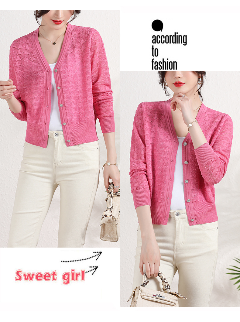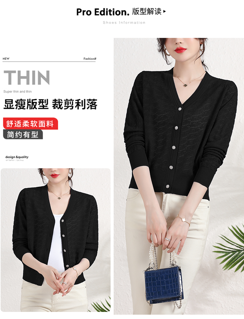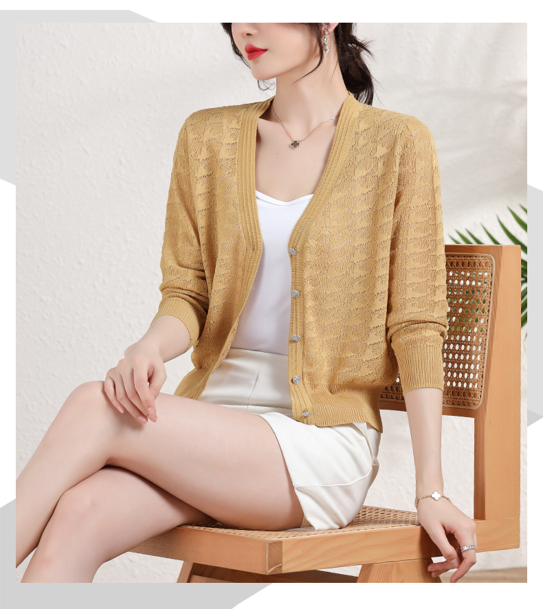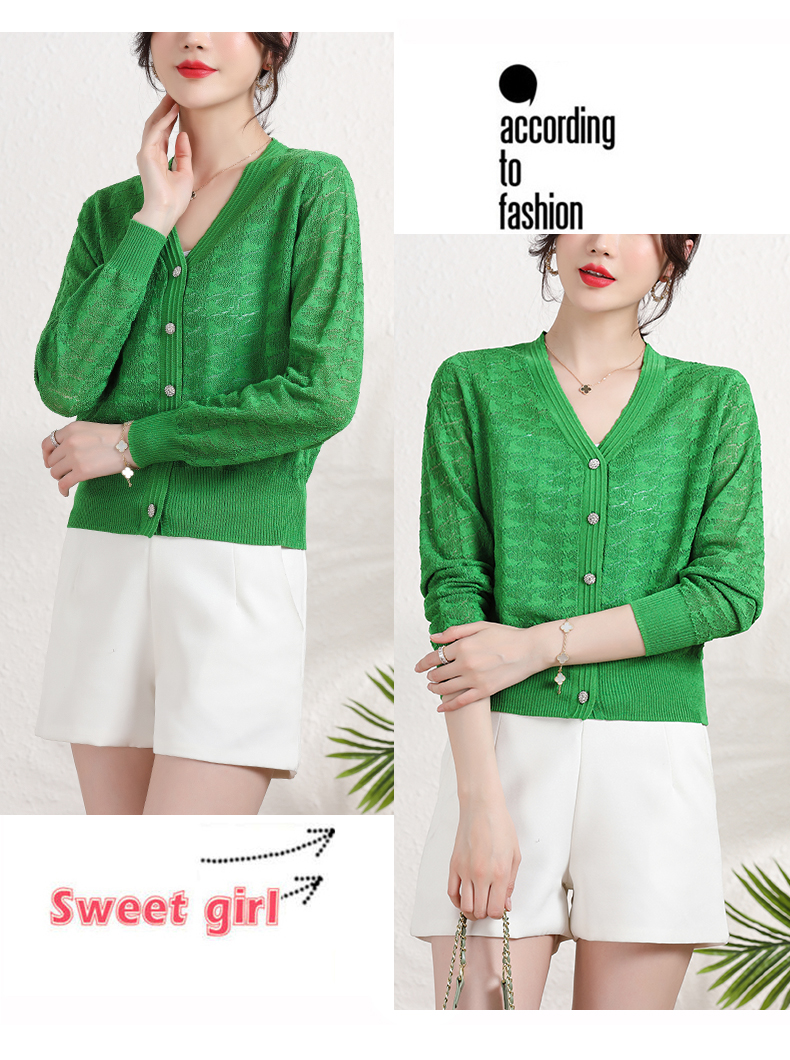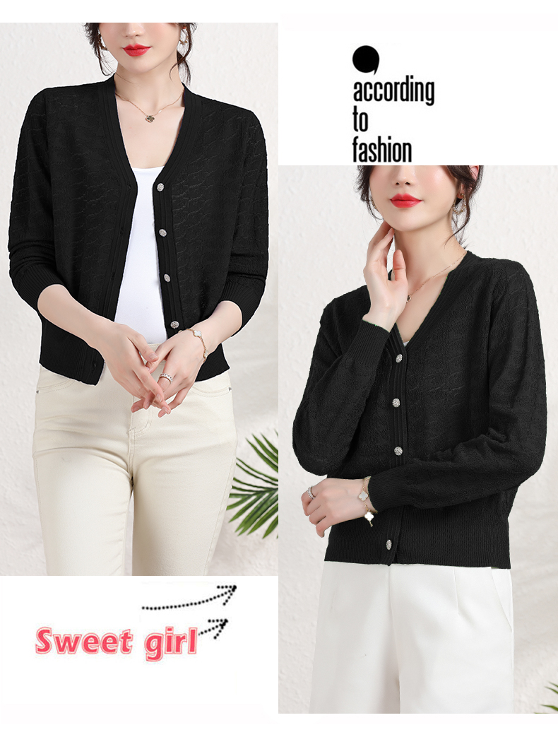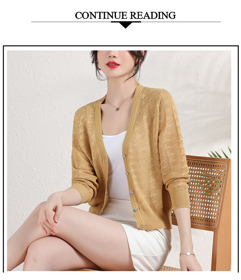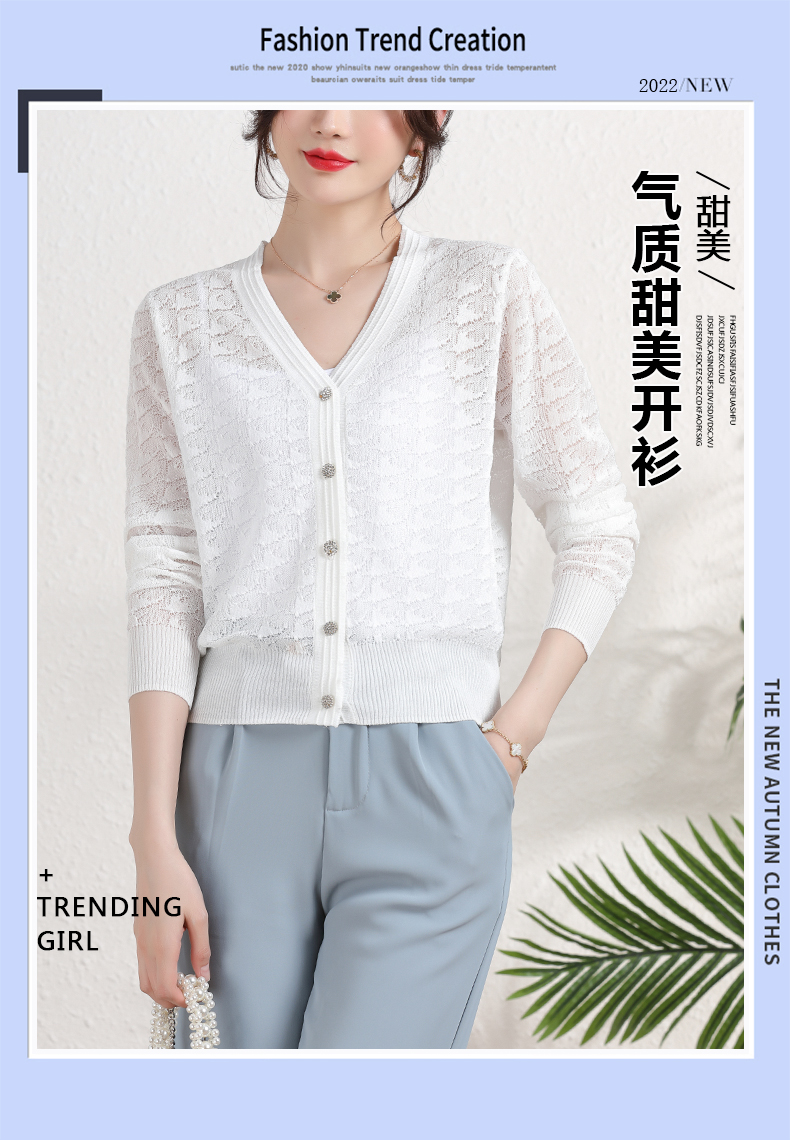 夏季薄款冰丝针织衫,防晒开衫外搭短款配吊带裙子的外套披肩镂空CC-2358