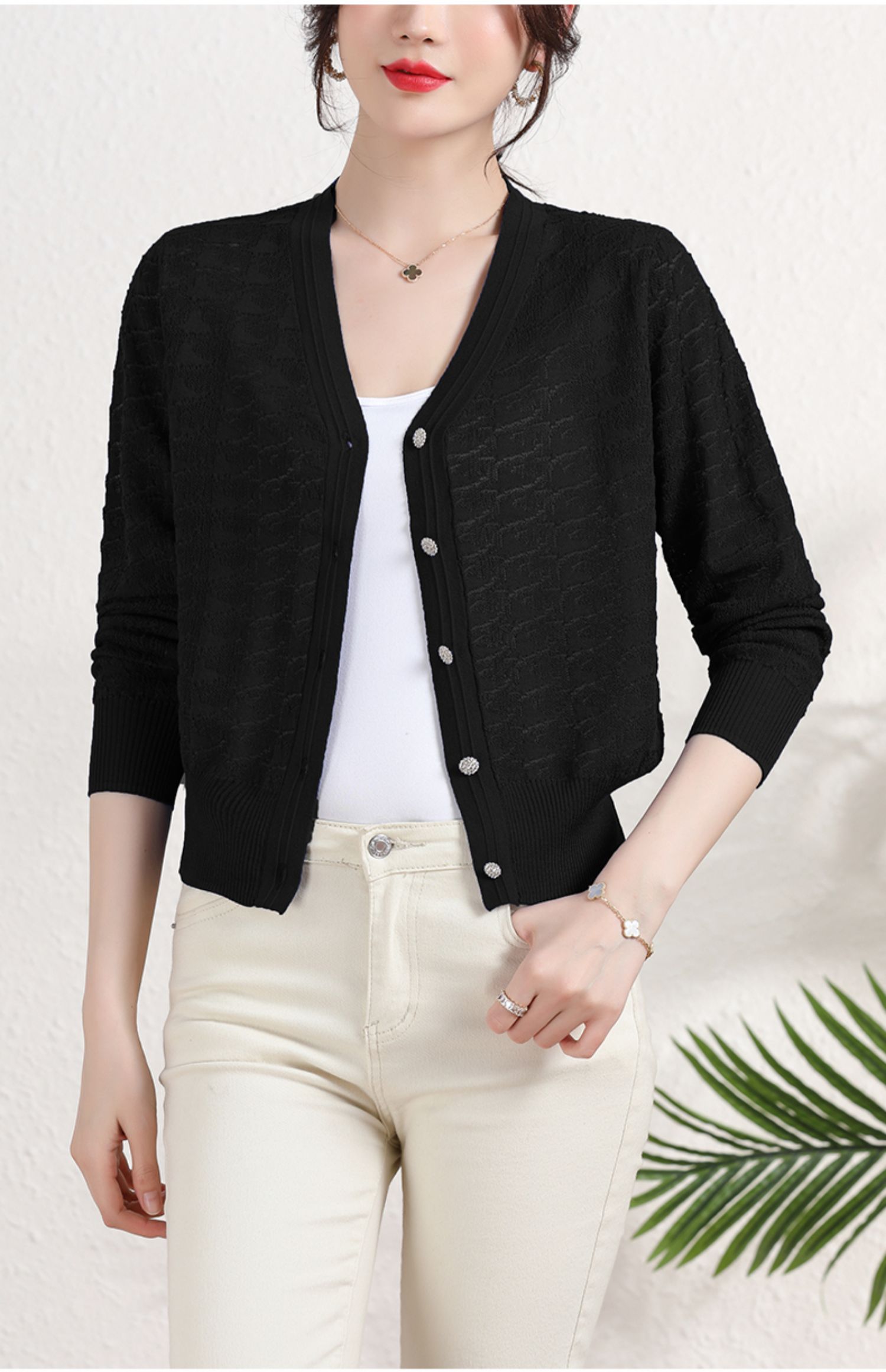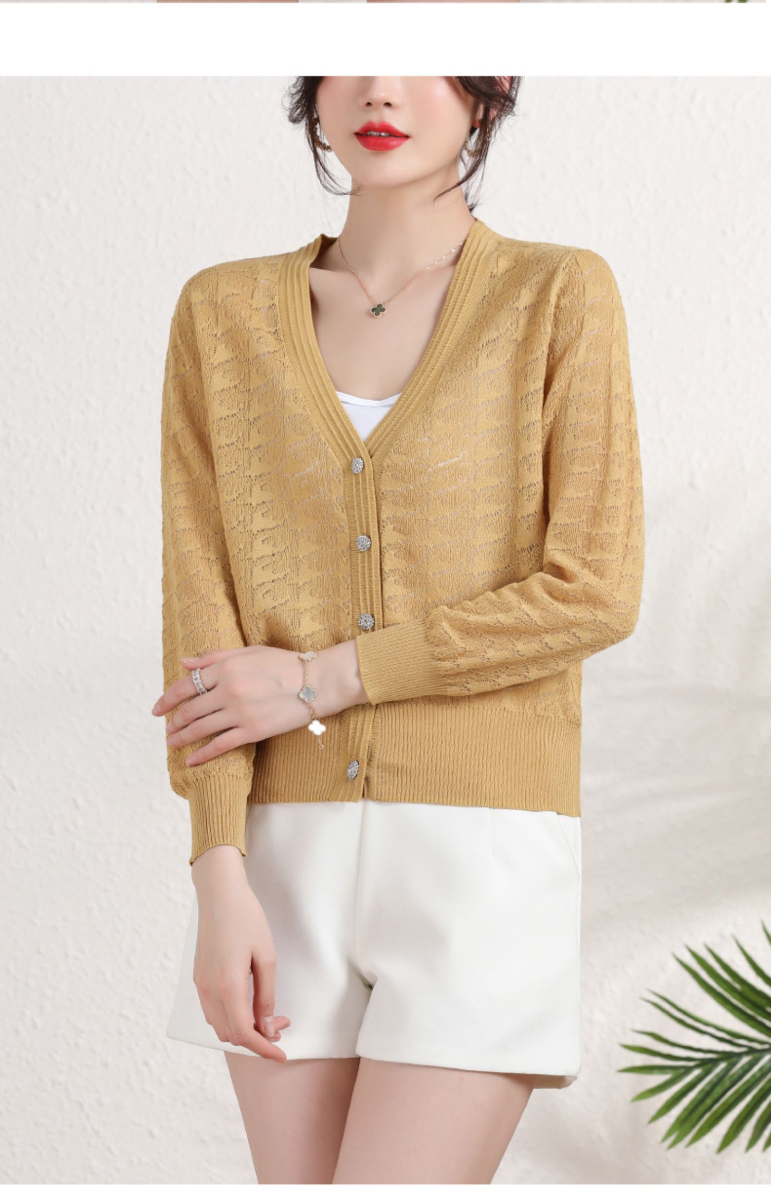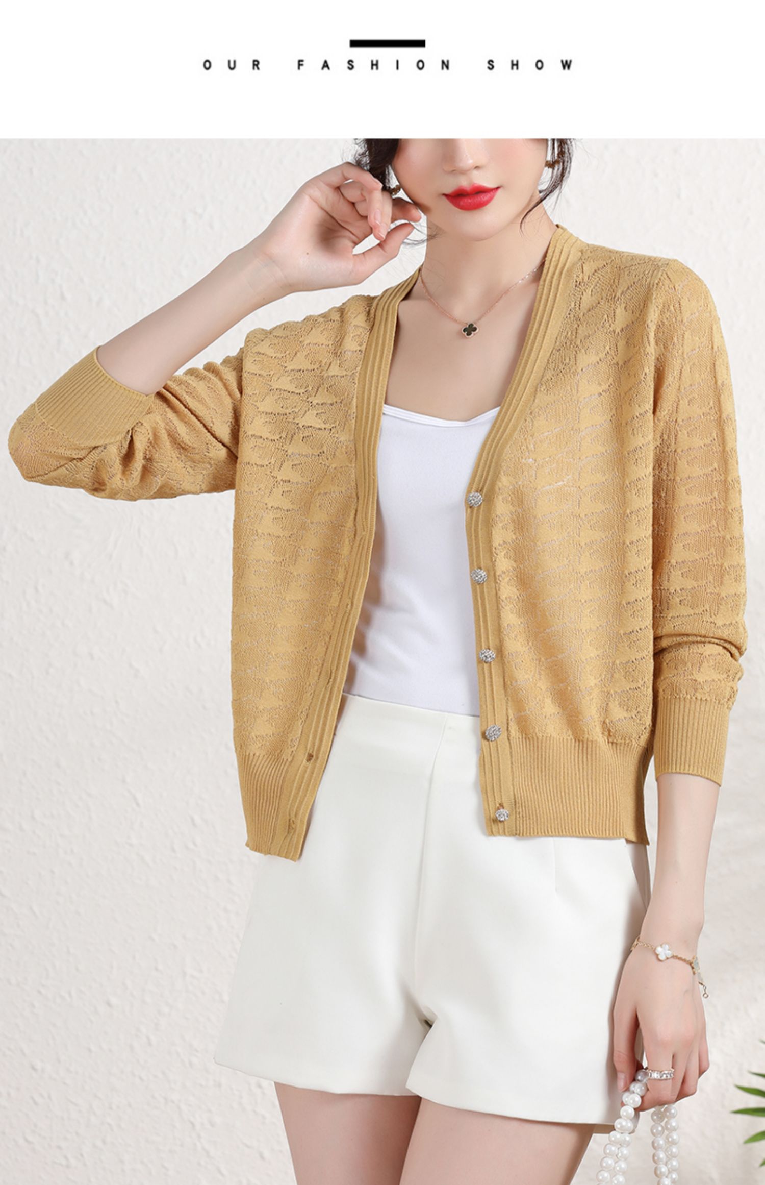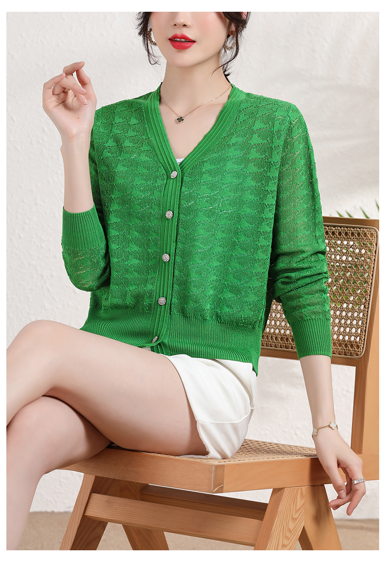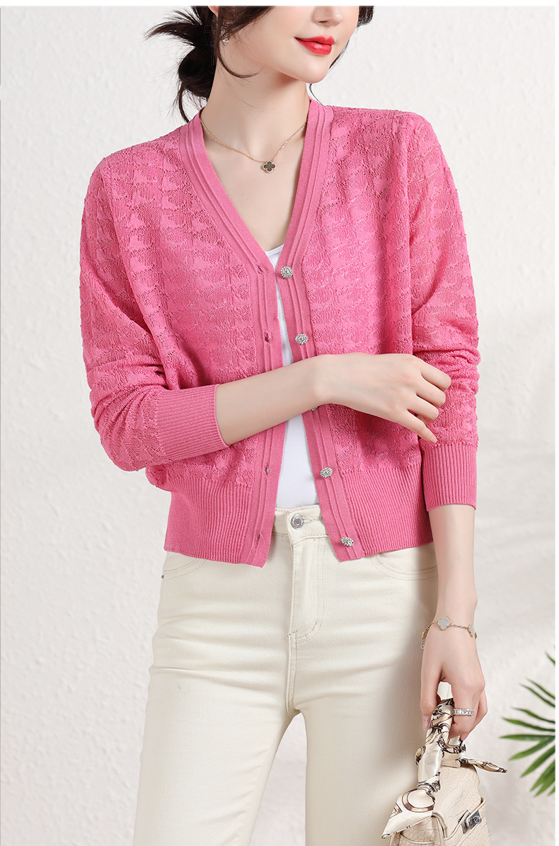 夏季薄款冰丝针织衫,防晒开衫外搭短款配吊带裙子的外套披肩镂空CC-2358