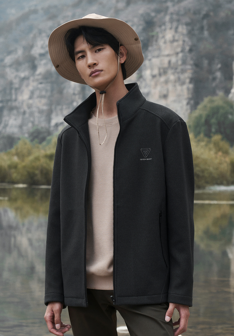 【限时秒杀】柒牌立领夹克男秋冬新品厚款休闲软壳户外保暖防风外套茄克衫125K70600