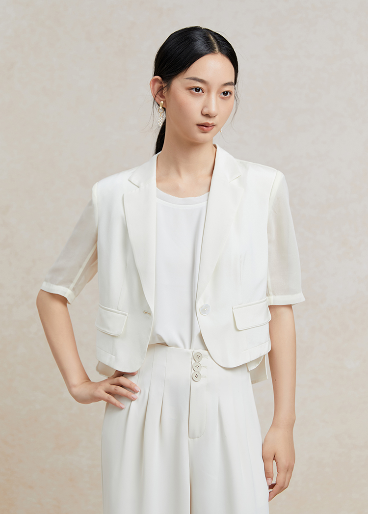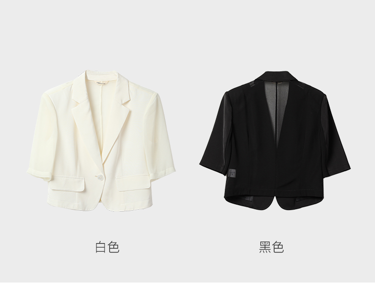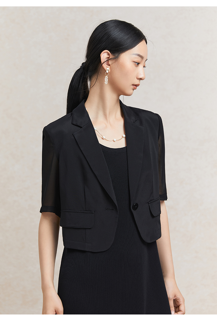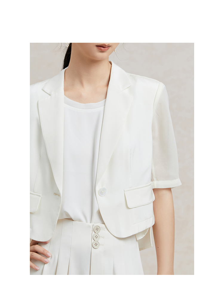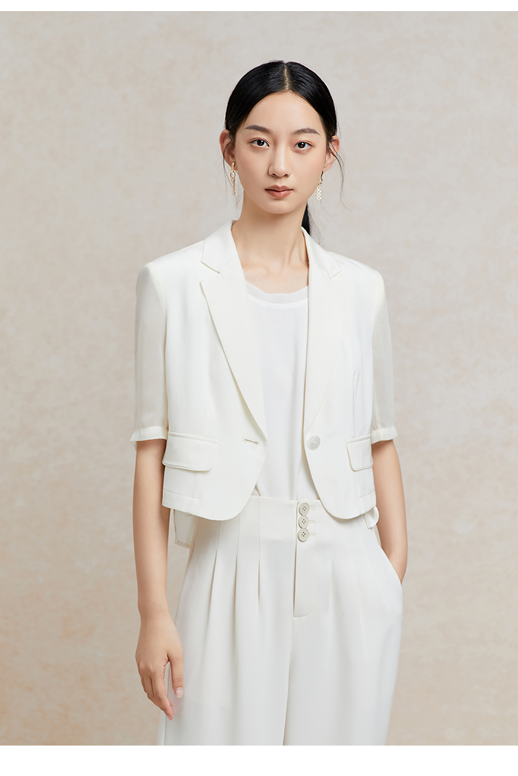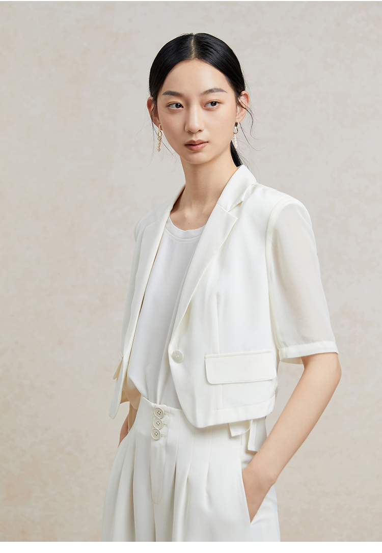 Famecoco短款一粒扣西装女士夏款通勤职业中袖小众西服FAC3AW009