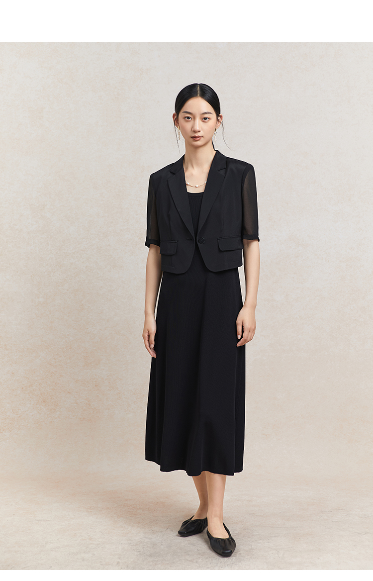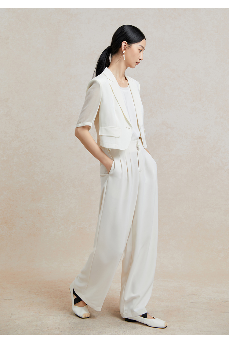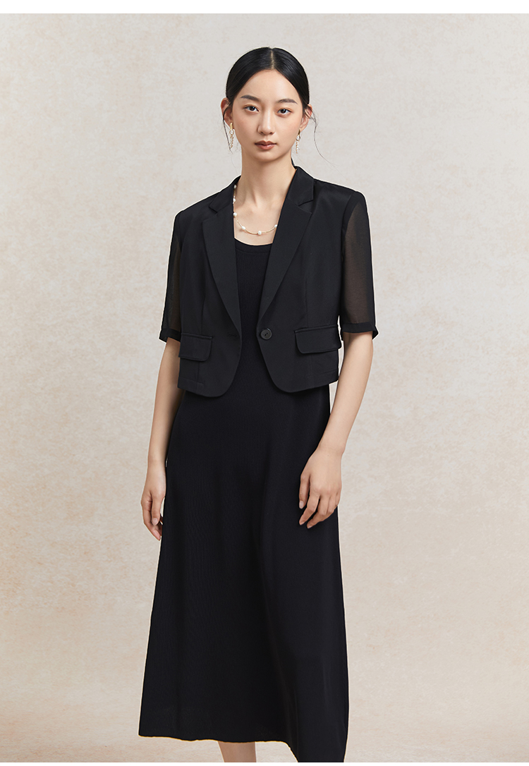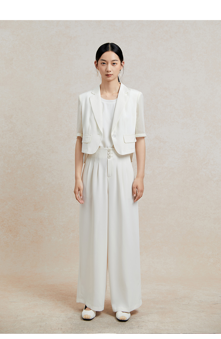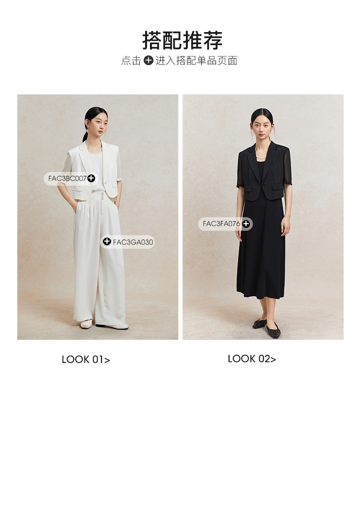 Famecoco短款一粒扣西装女士夏款通勤职业中袖小众西服FAC3AW009