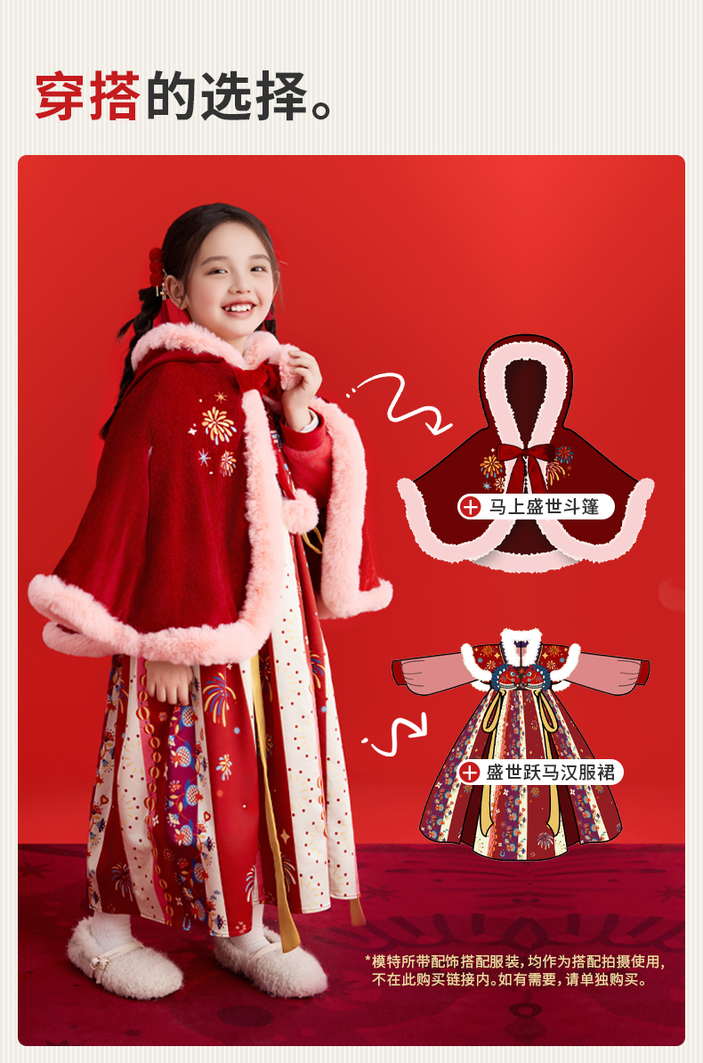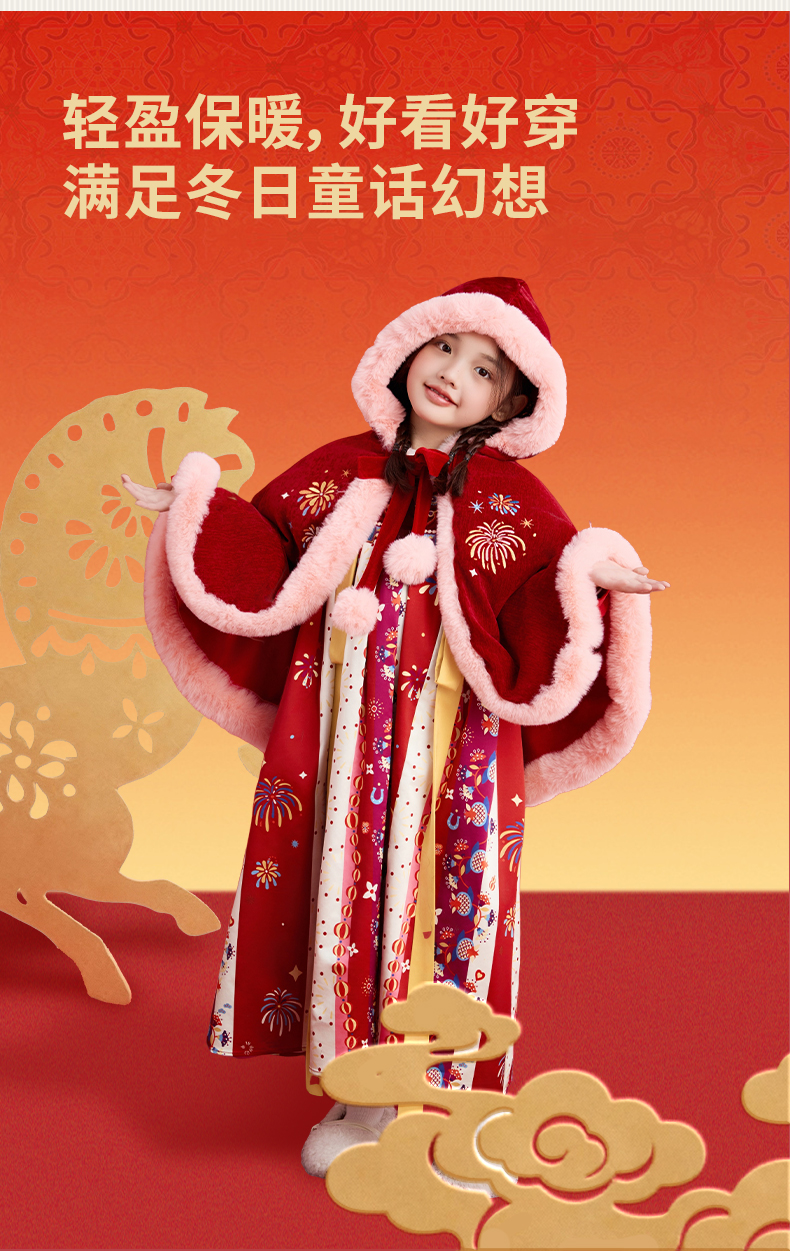 年衣童装儿童斗篷儿童披肩25年冬款新品女童中式马上盛世斗篷