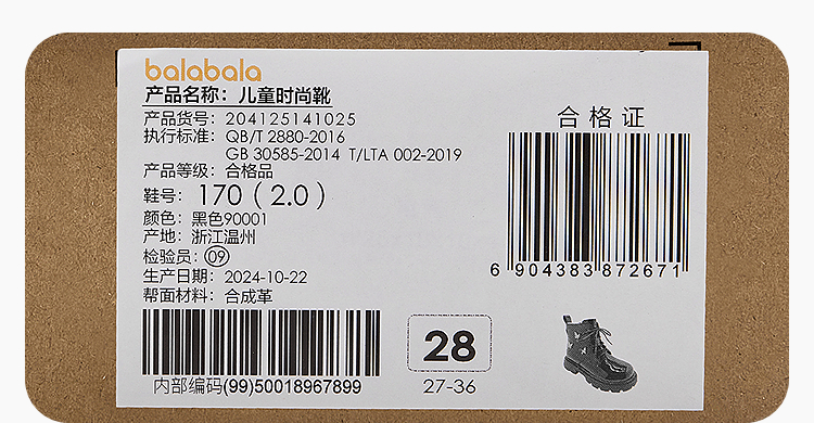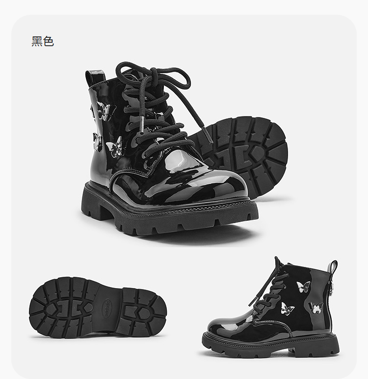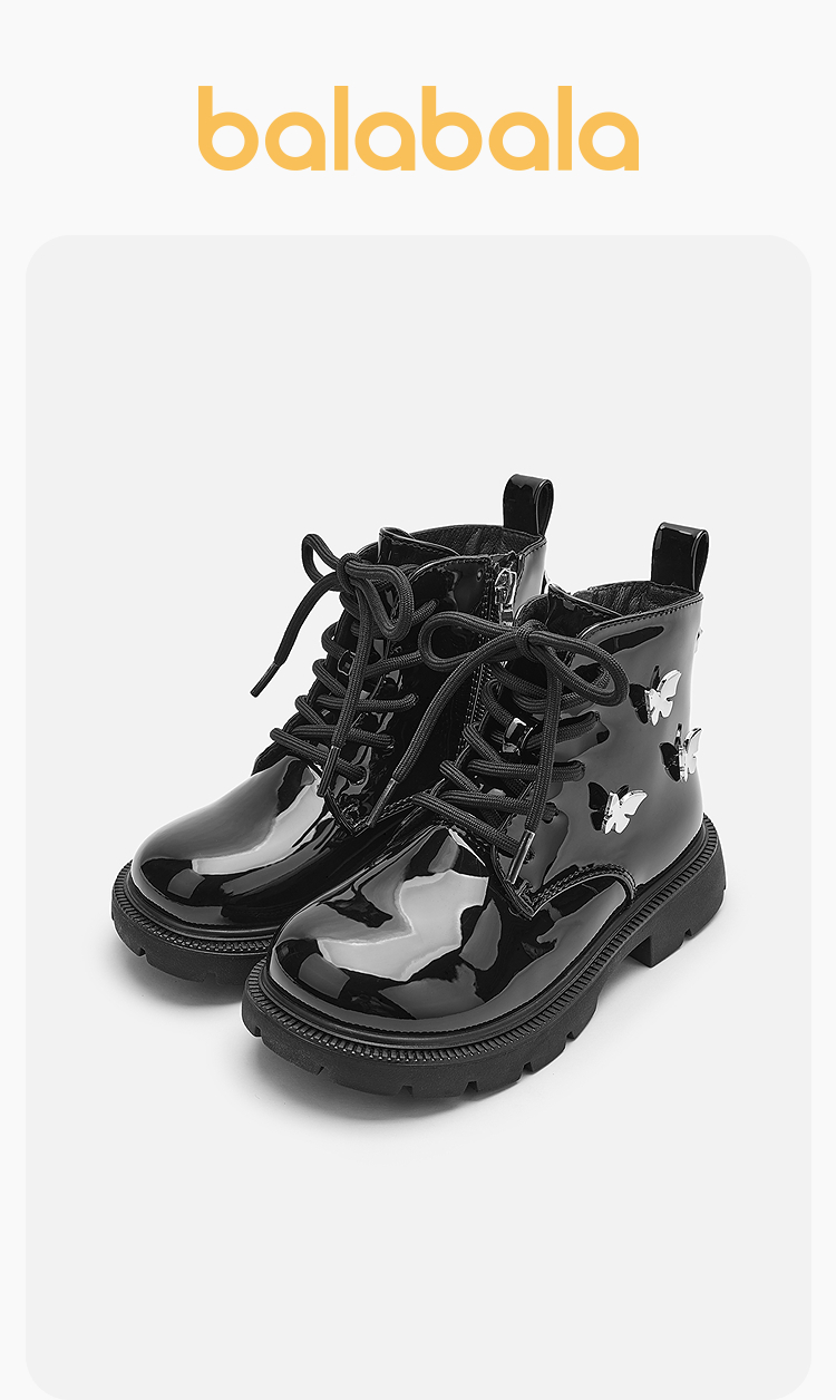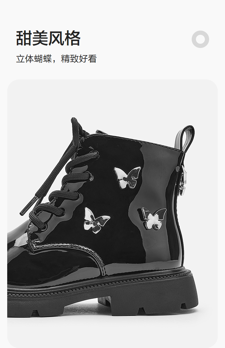 巴拉巴拉童鞋儿童休闲鞋女童春秋蝴蝶装饰时尚靴子潮流个性马丁靴