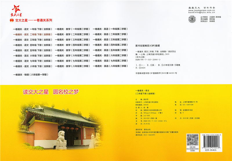 交大之星 一卷通关 语文 2/二年级(下)第二学期 TG4 全新版 与人教版统编教材配套 配新教材 上海交通大学出版社