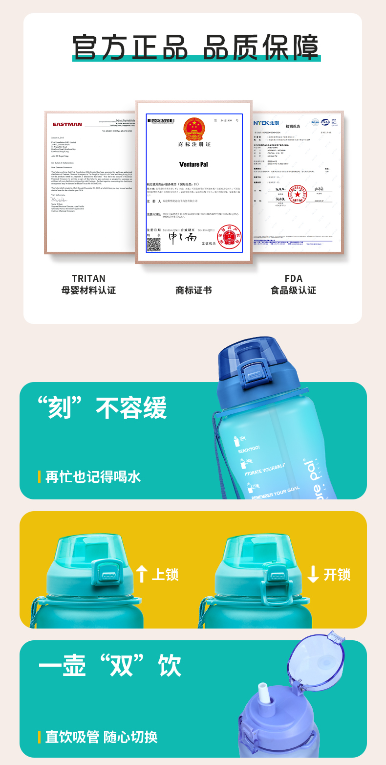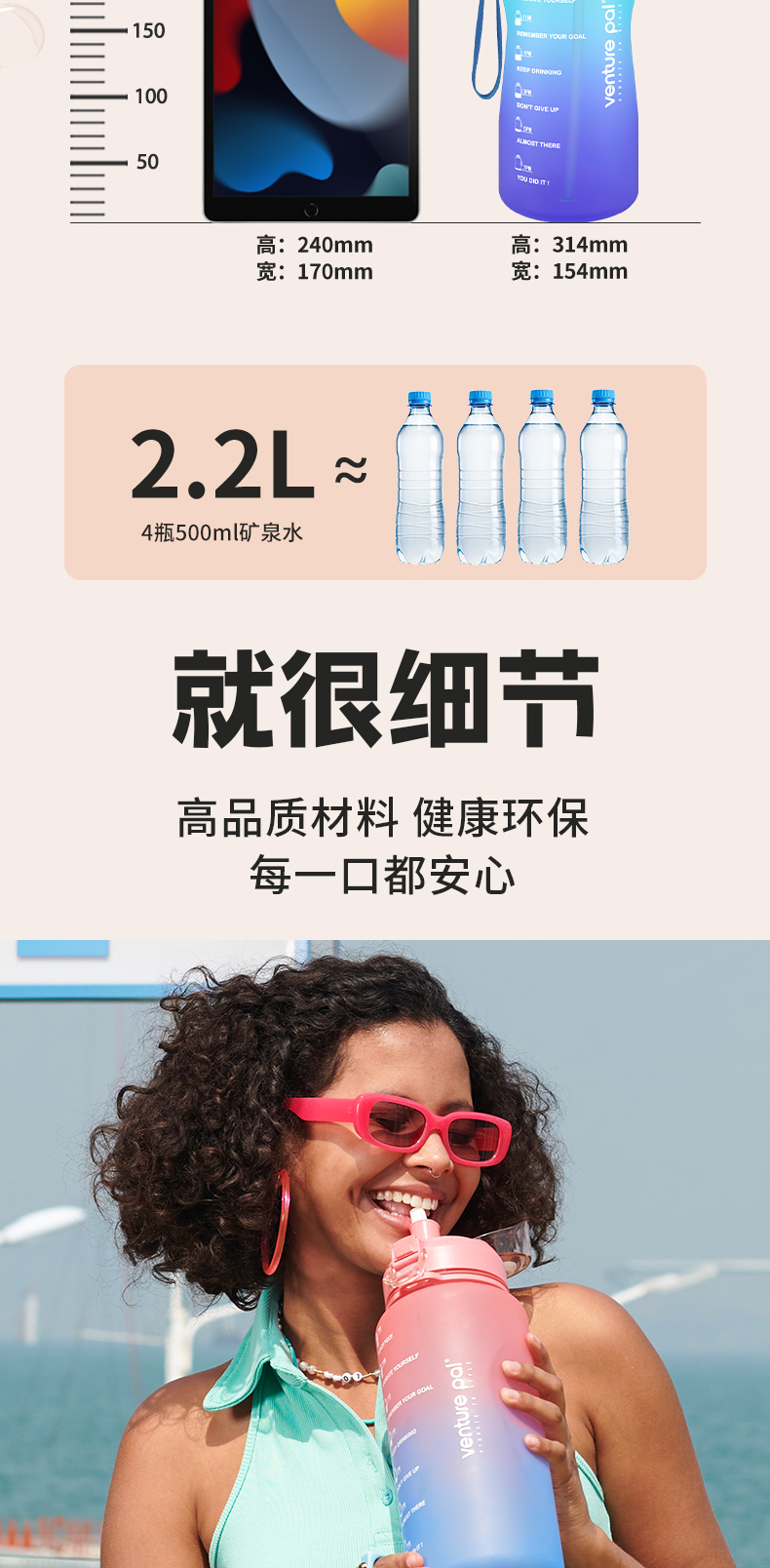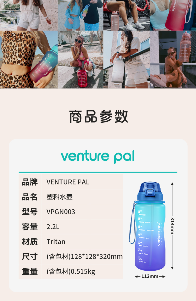 | 【商品名称】Venture Pal渐变色双印吸管大水壶2.2L |