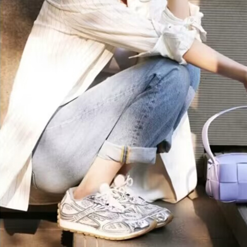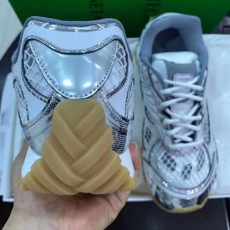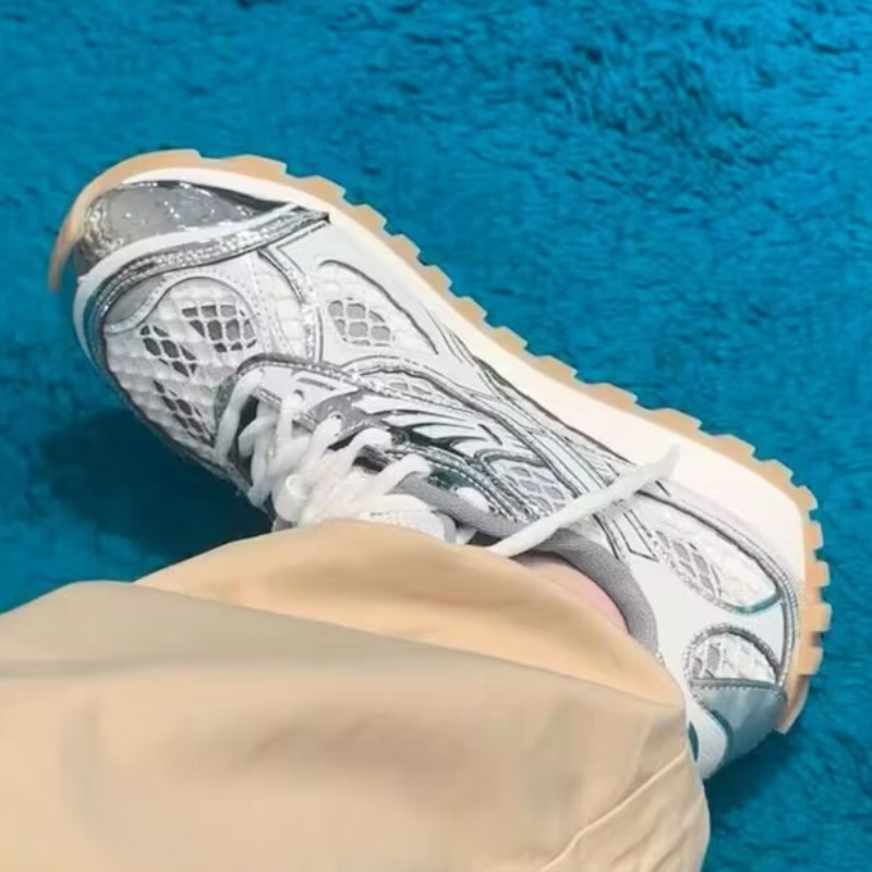 【透气网面!休闲运动之选】2023秋新款IC BV网格老爹鞋银色系带情侣慢跑鞋网面透气休闲运动,银色网格,网面透气设计。