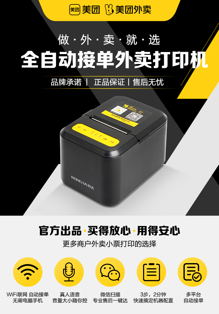 【特价款】美团外卖云打印机 全自动接单 无线WiFi 美&饿双平台可用 MTRP58