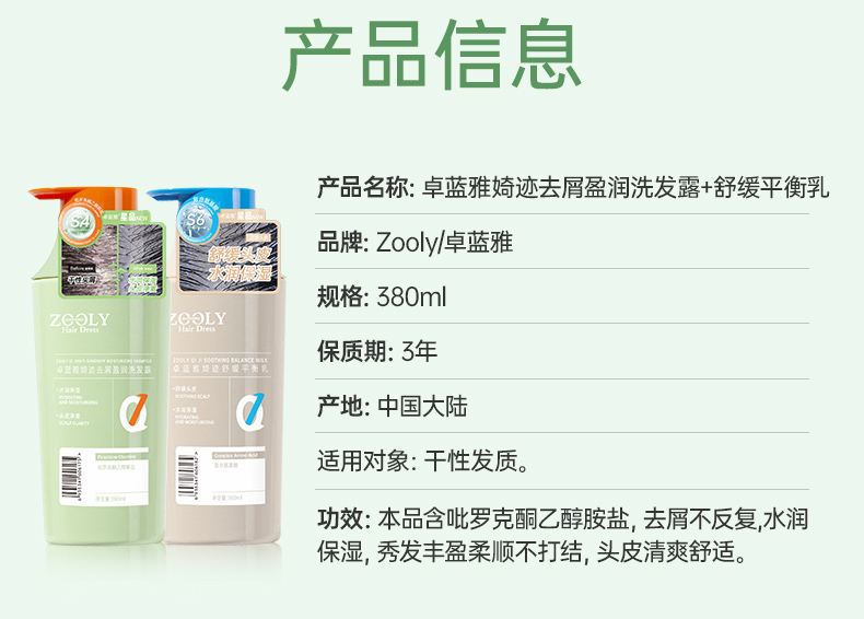 【专研头屑问题】卓蓝雅婍迹去屑洗/护380ml单品/套装