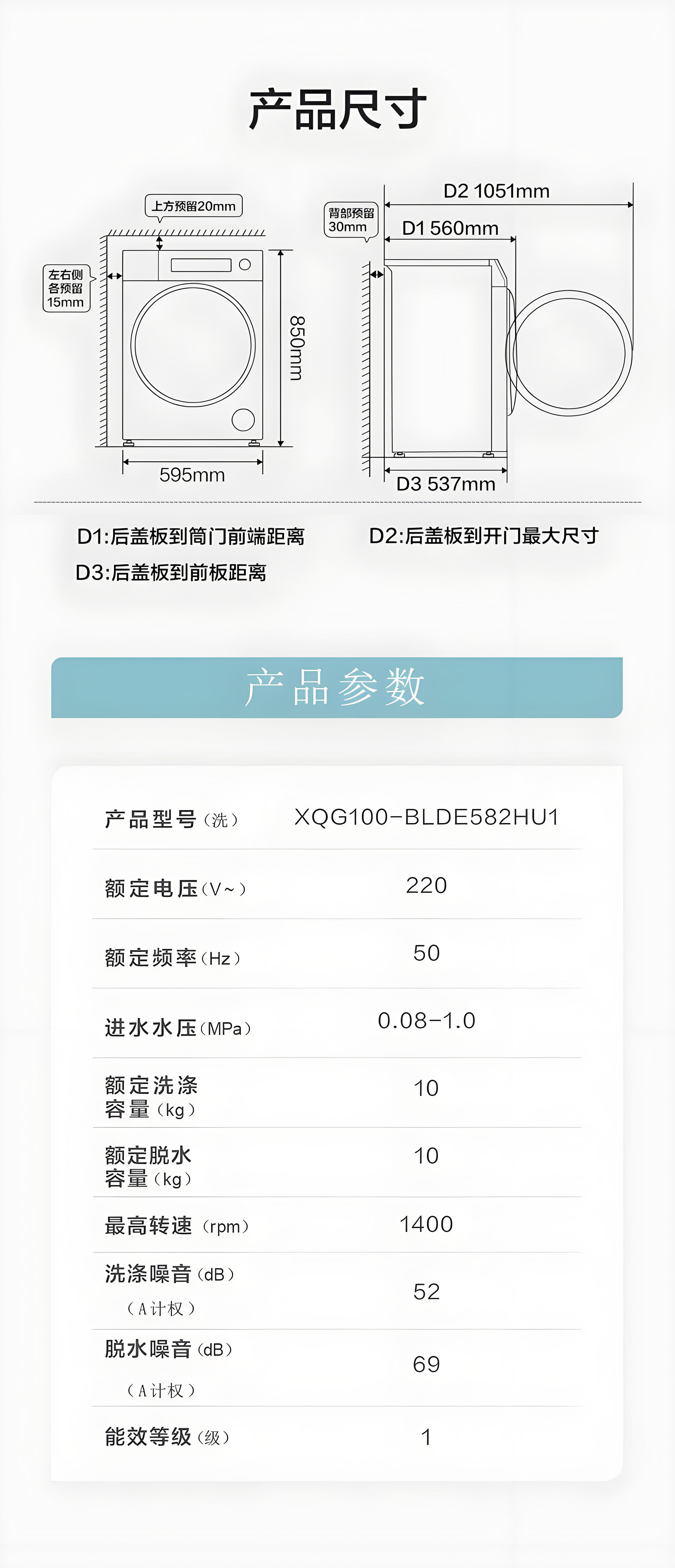 海尔(Haier)洗衣机 XQG100-BLDE582HU1