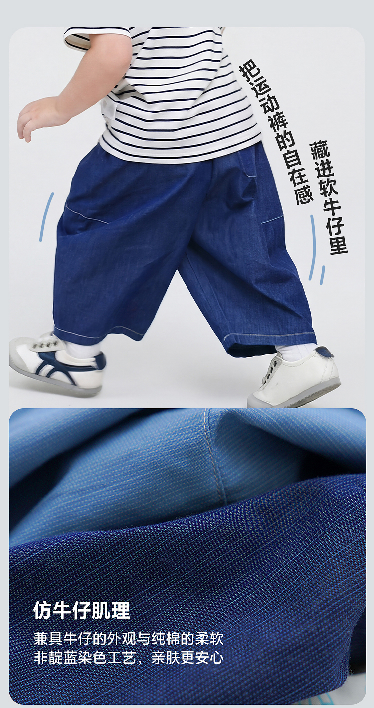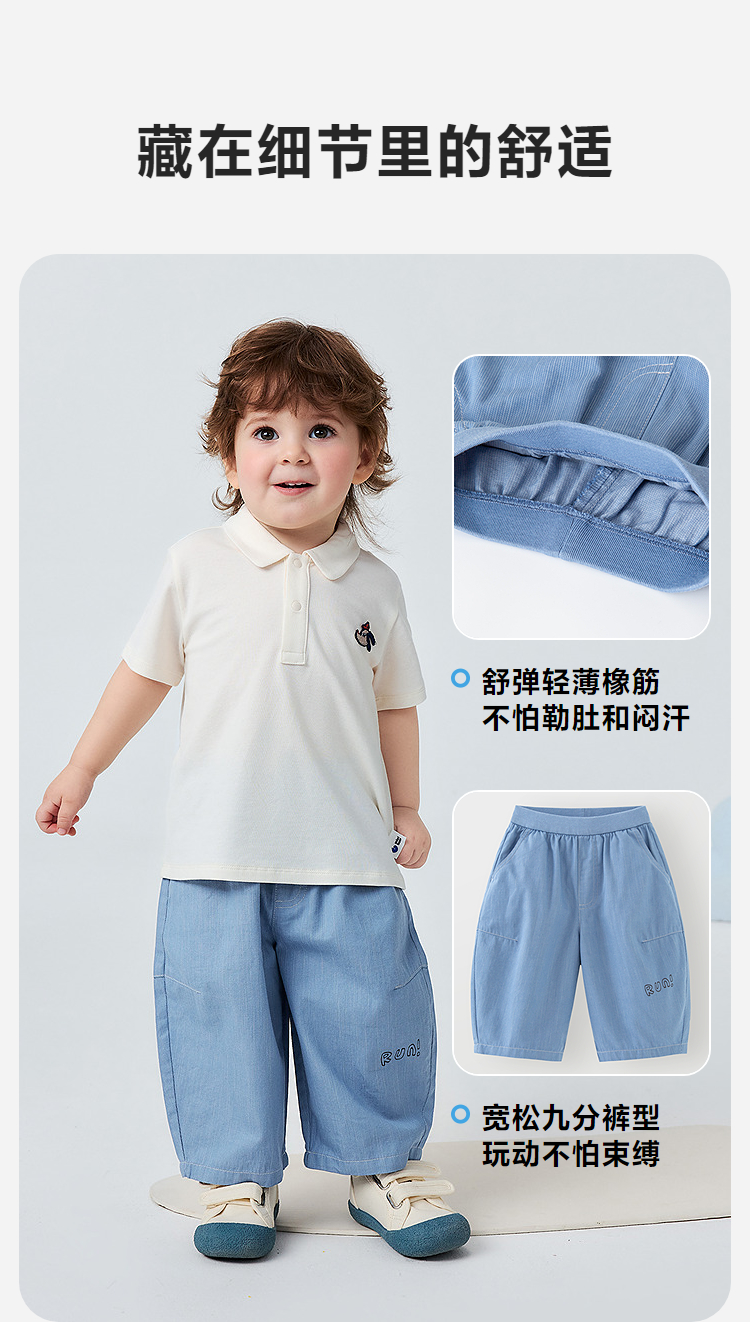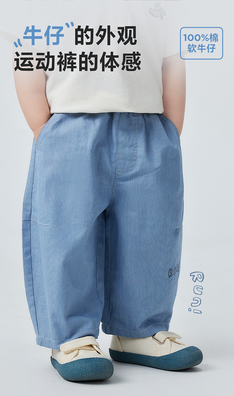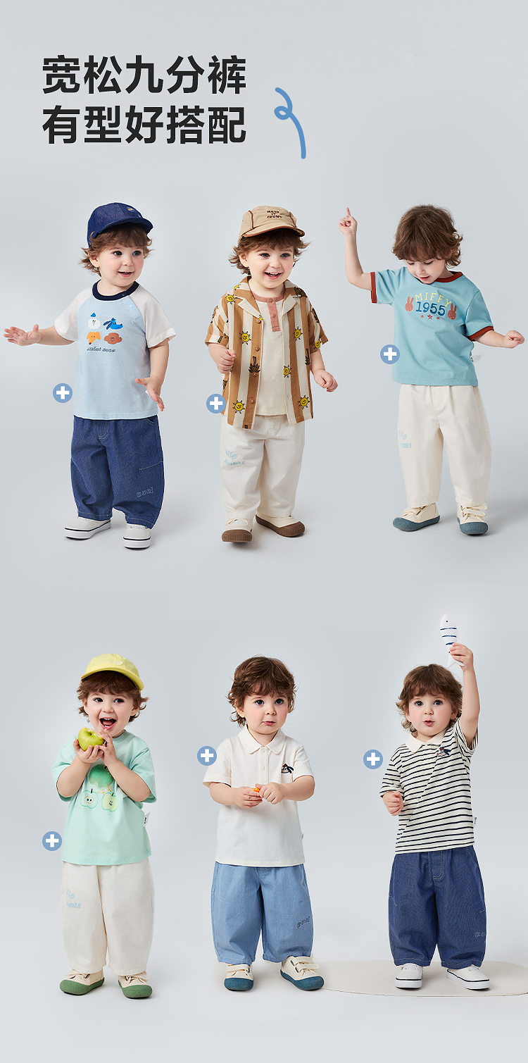 迷你巴拉巴拉男童宝宝裤子2026夏季新品轻薄透气仿牛仔儿童九分裤