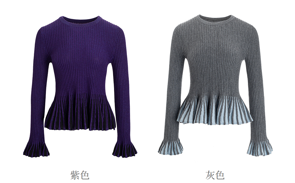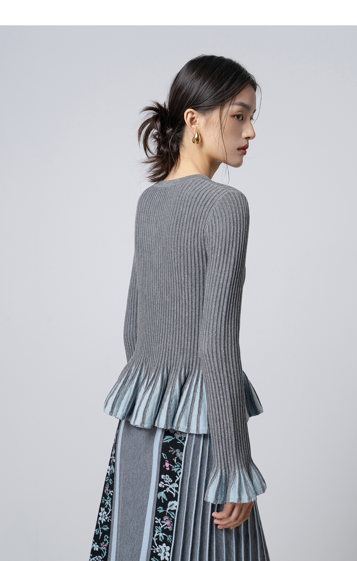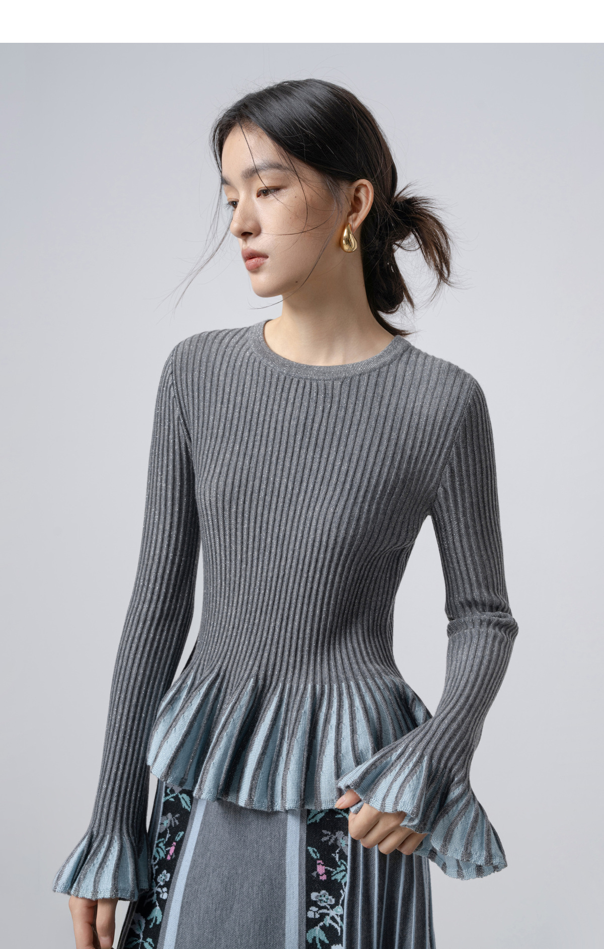 【林栖设计小店】【褶皱套装】金葱毛织荷叶边上衣显瘦收腰2025秋冬新款绿紫白暮云灰毛衣女1954042+1954043