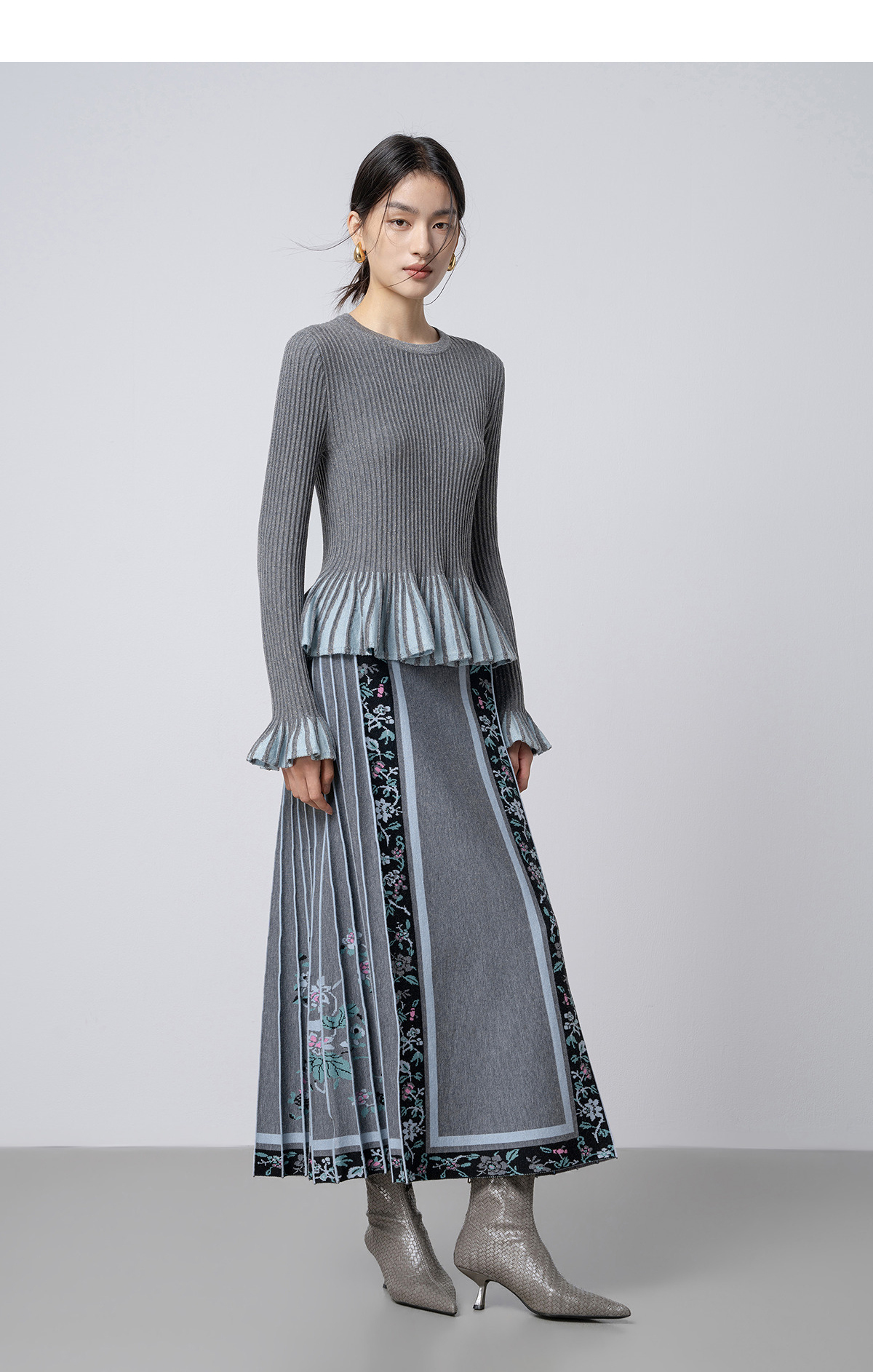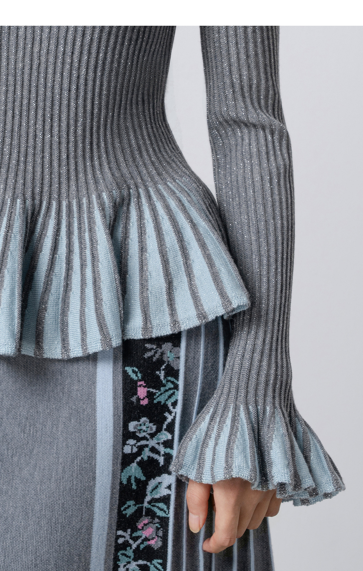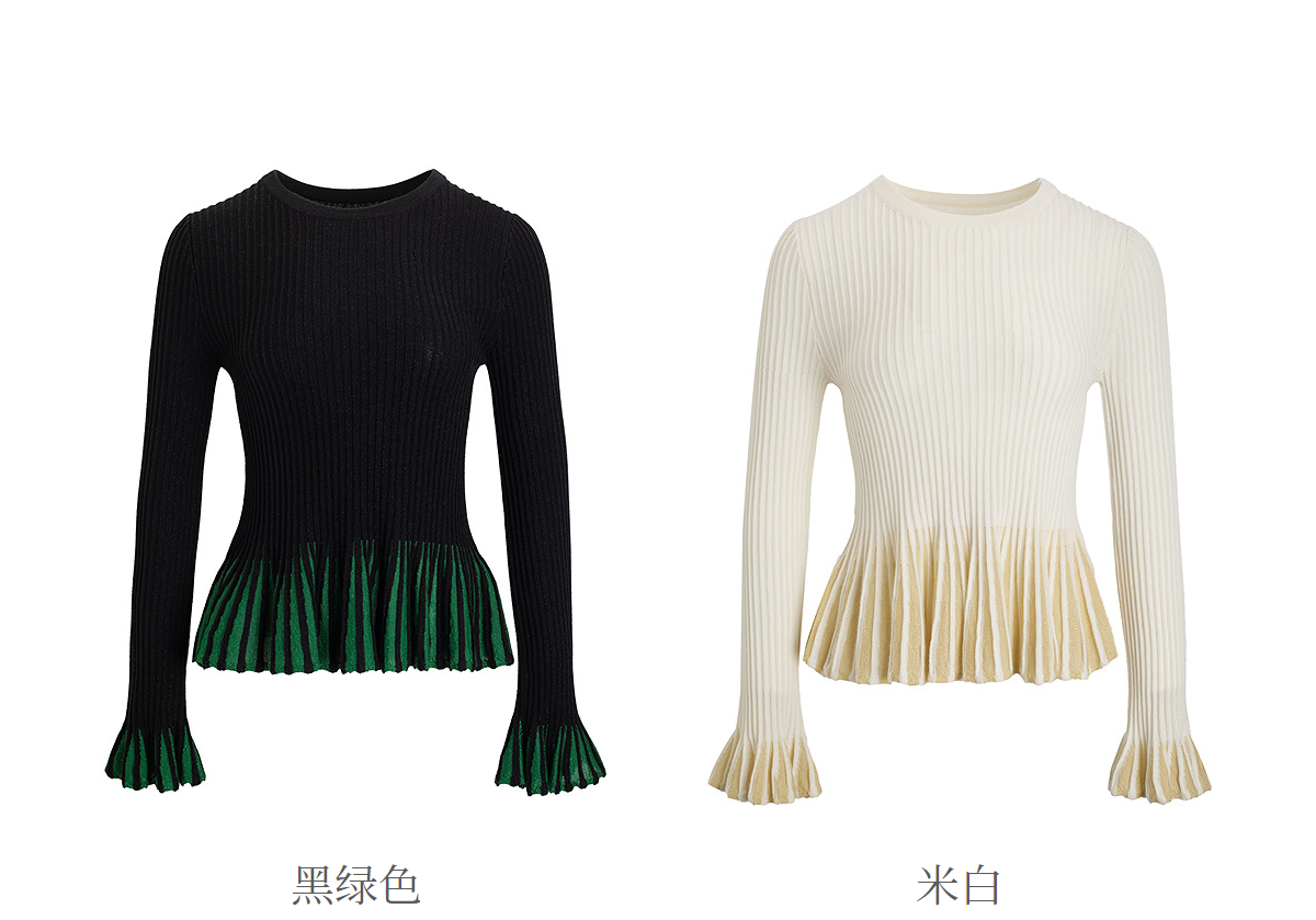 【林栖设计小店】【褶皱套装】金葱毛织荷叶边上衣显瘦收腰2025秋冬新款绿紫白暮云灰毛衣女1954042+1954043