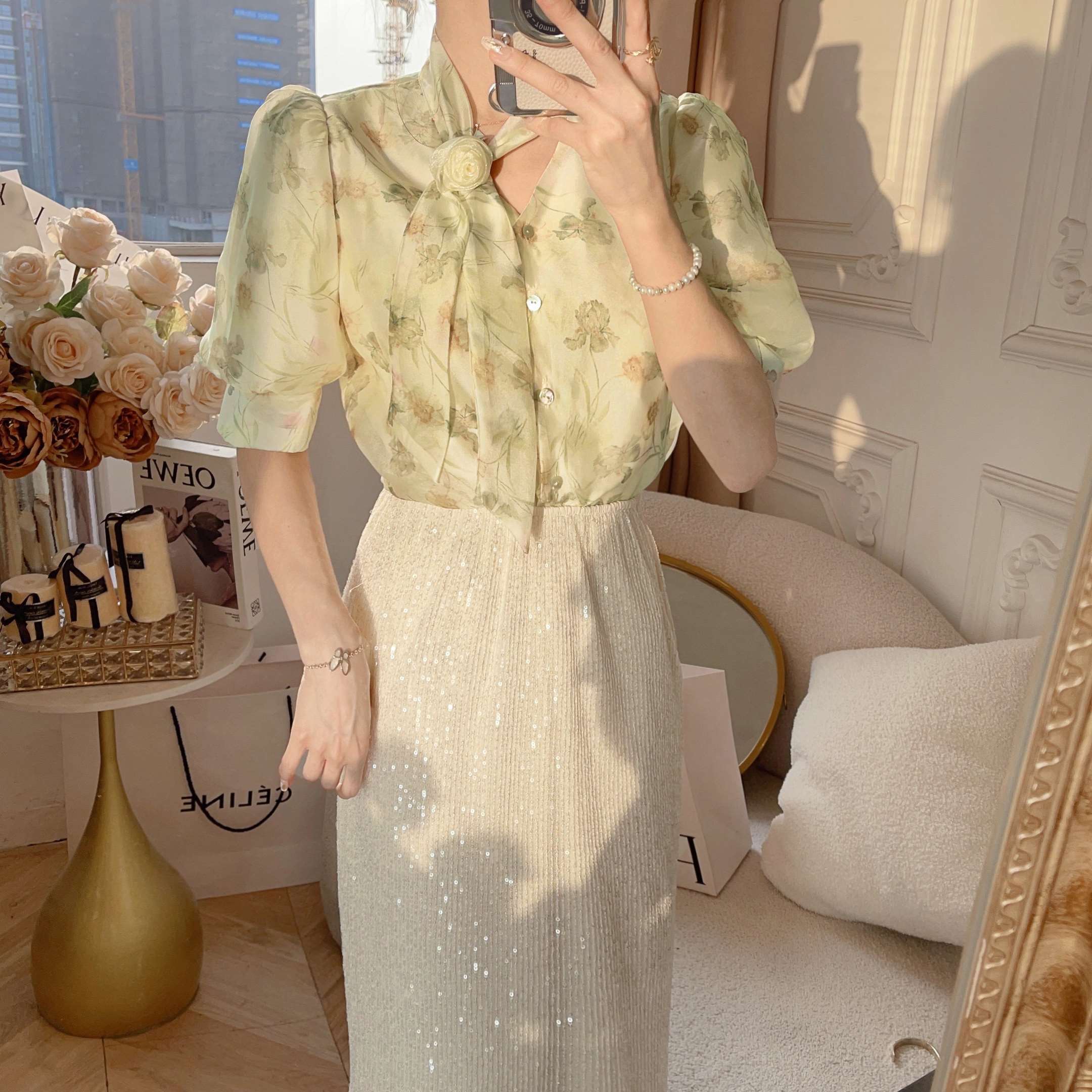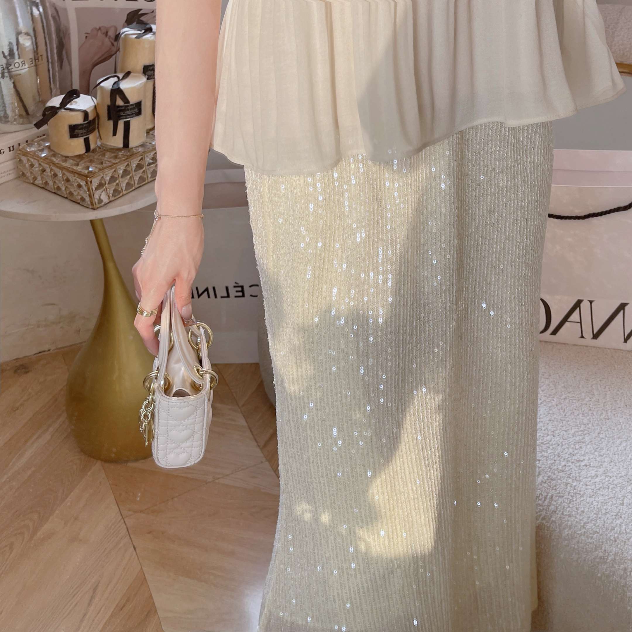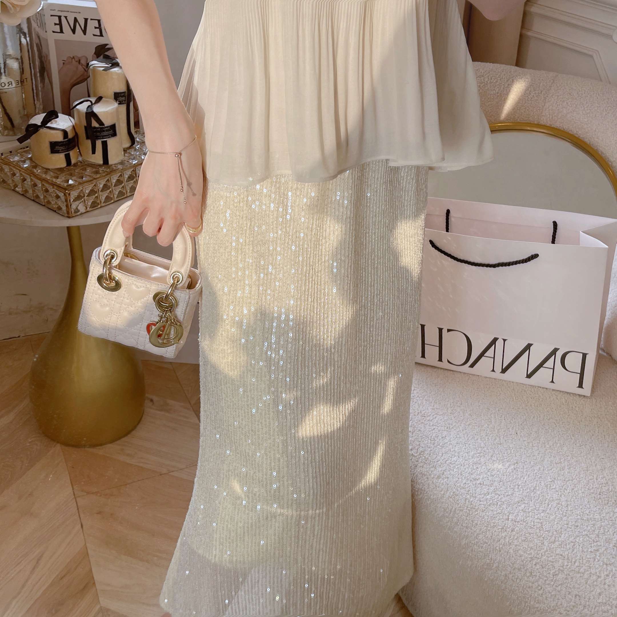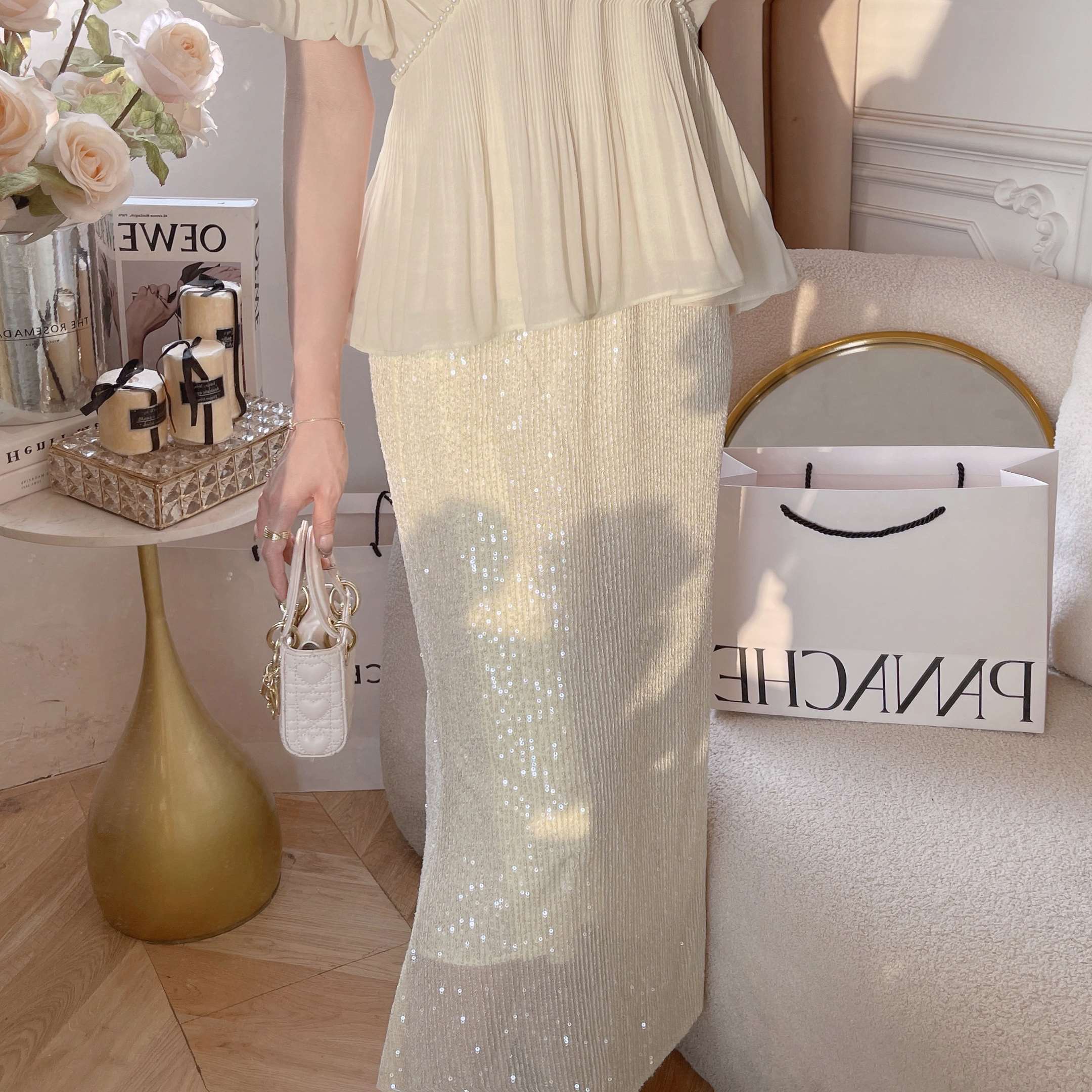 张心子【冰河碎片】法式名媛风亮片半身裙女2023夏季新款中长款裙 U2302103