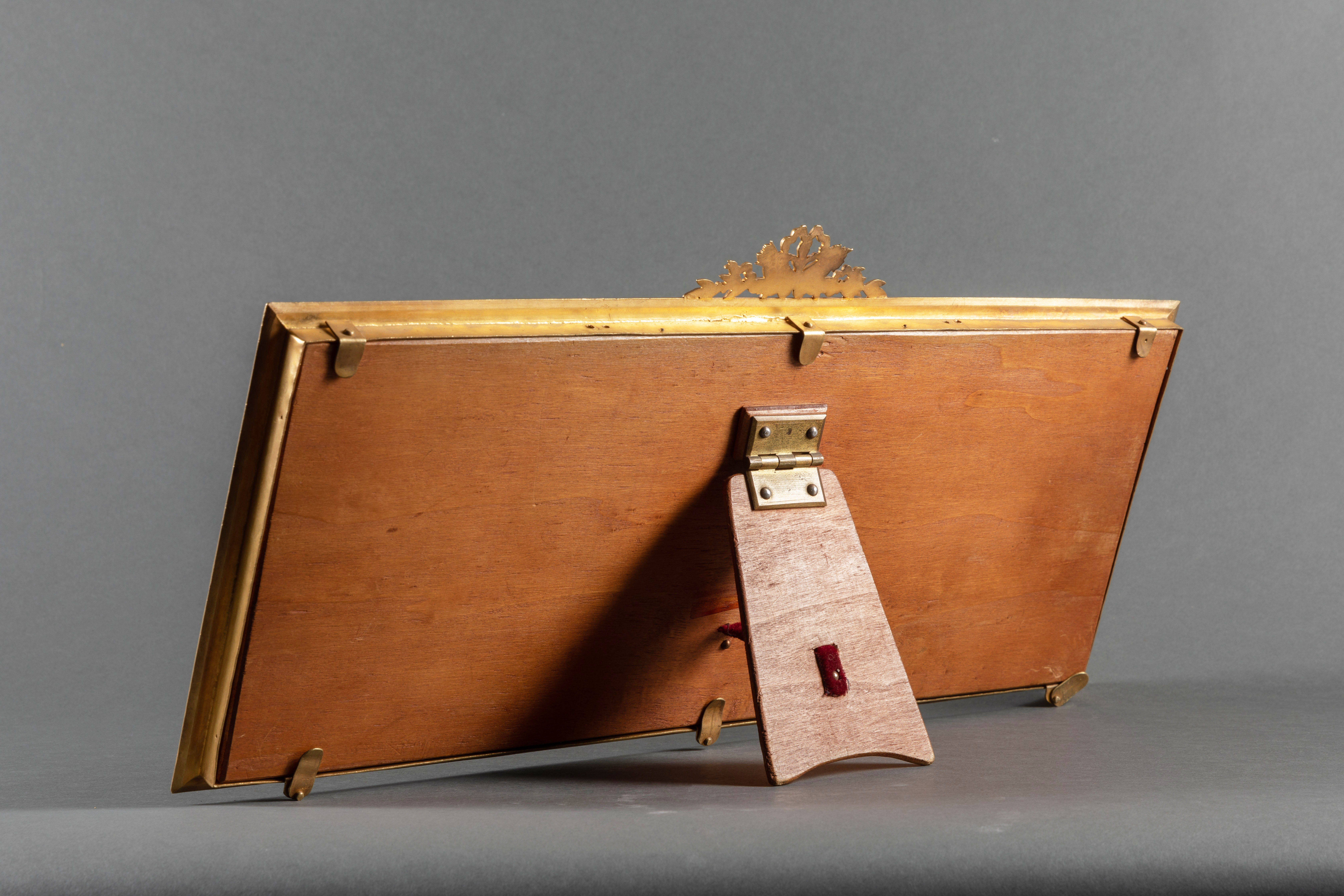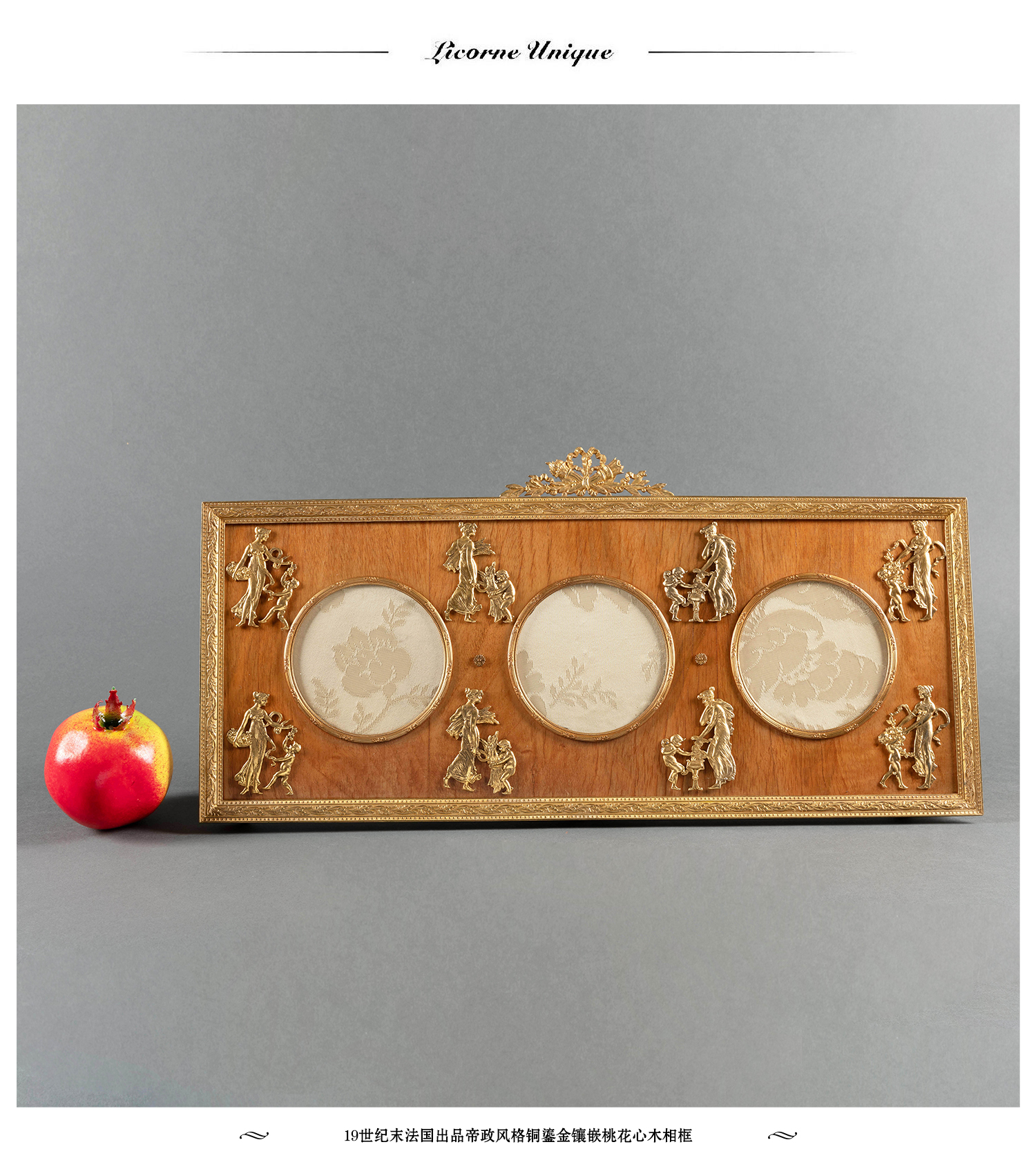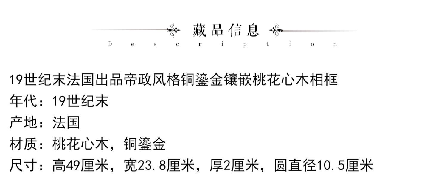 独角鹿西洋古董摆件19世纪末法国帝政风格铜鎏金镶嵌桃花心木相框