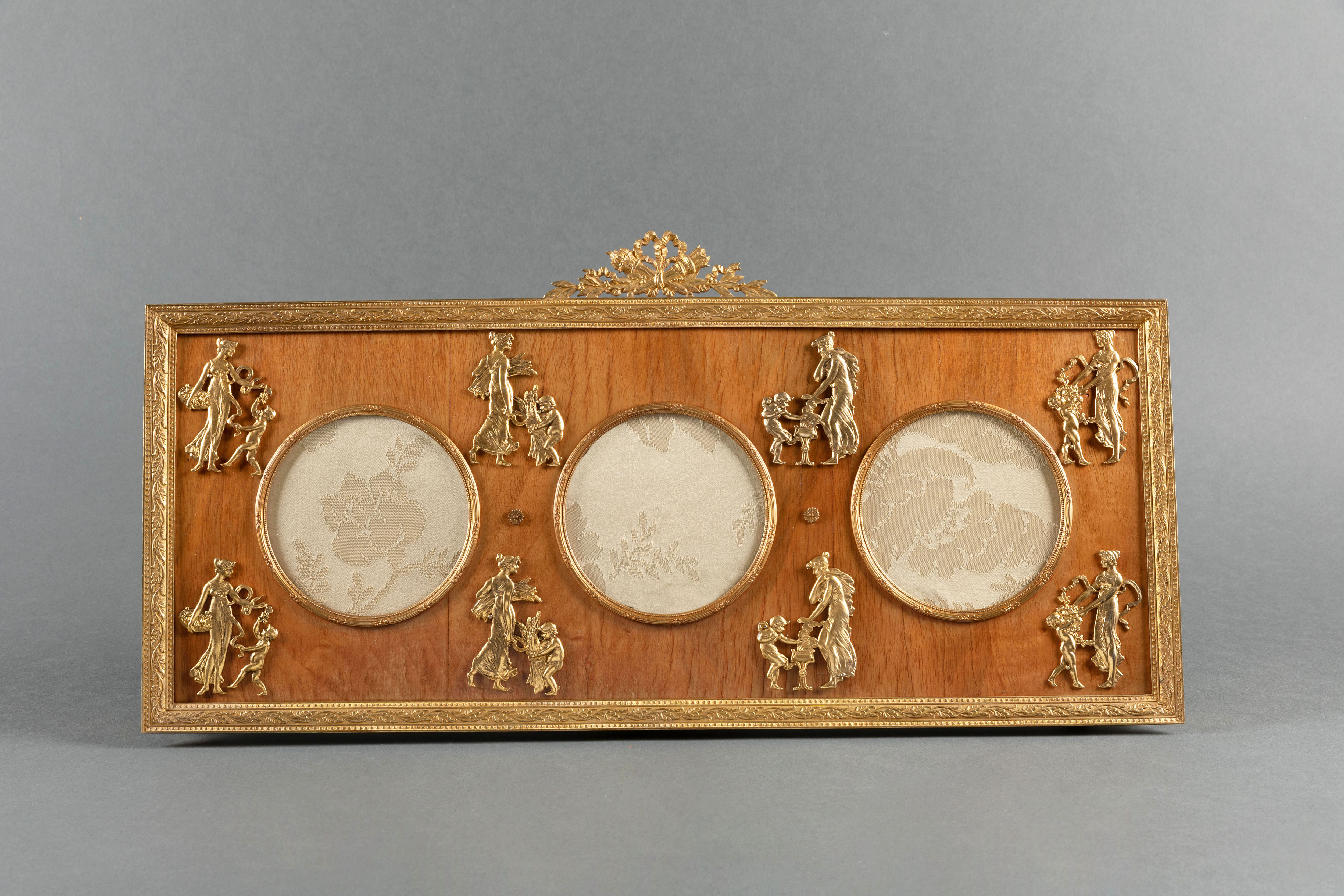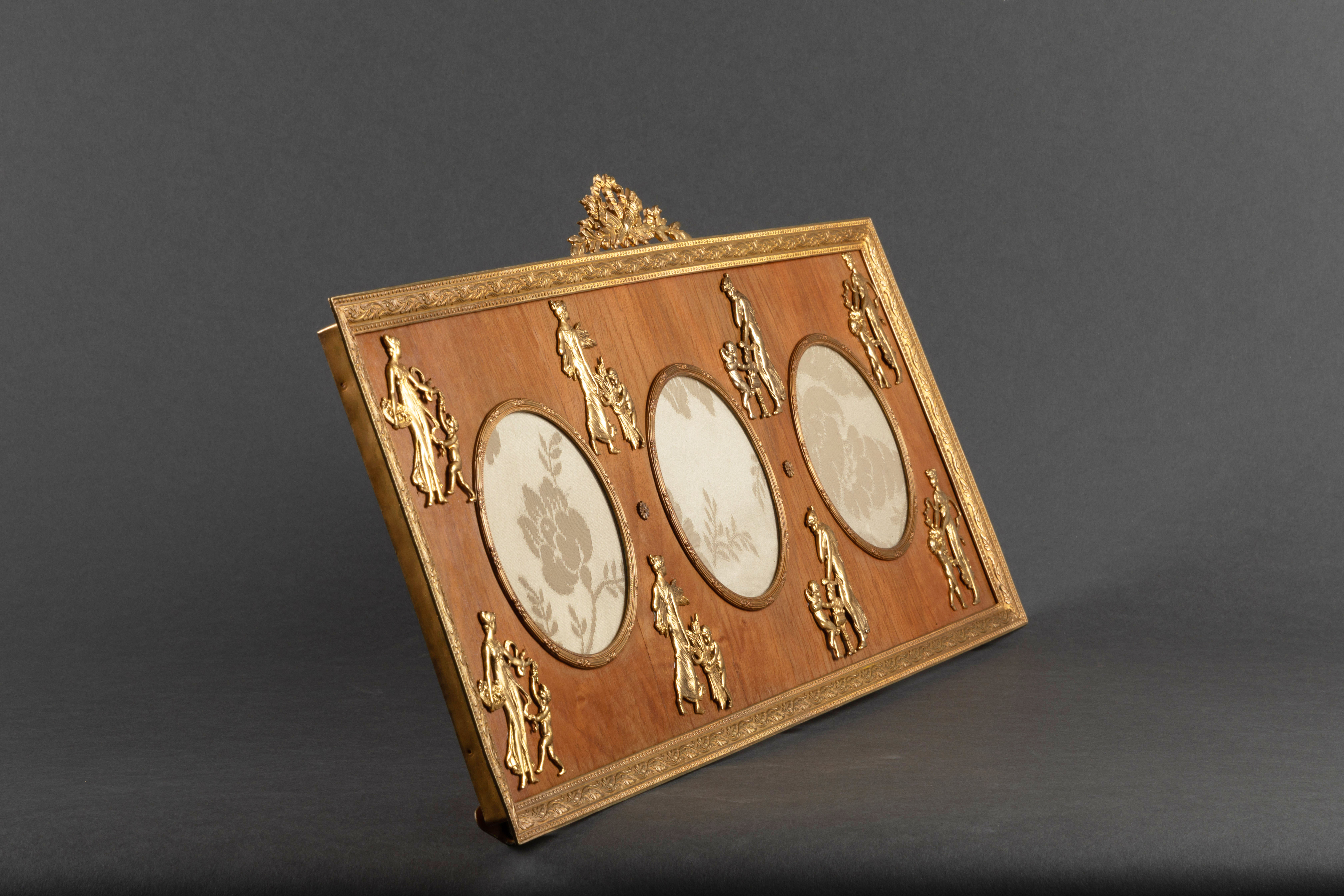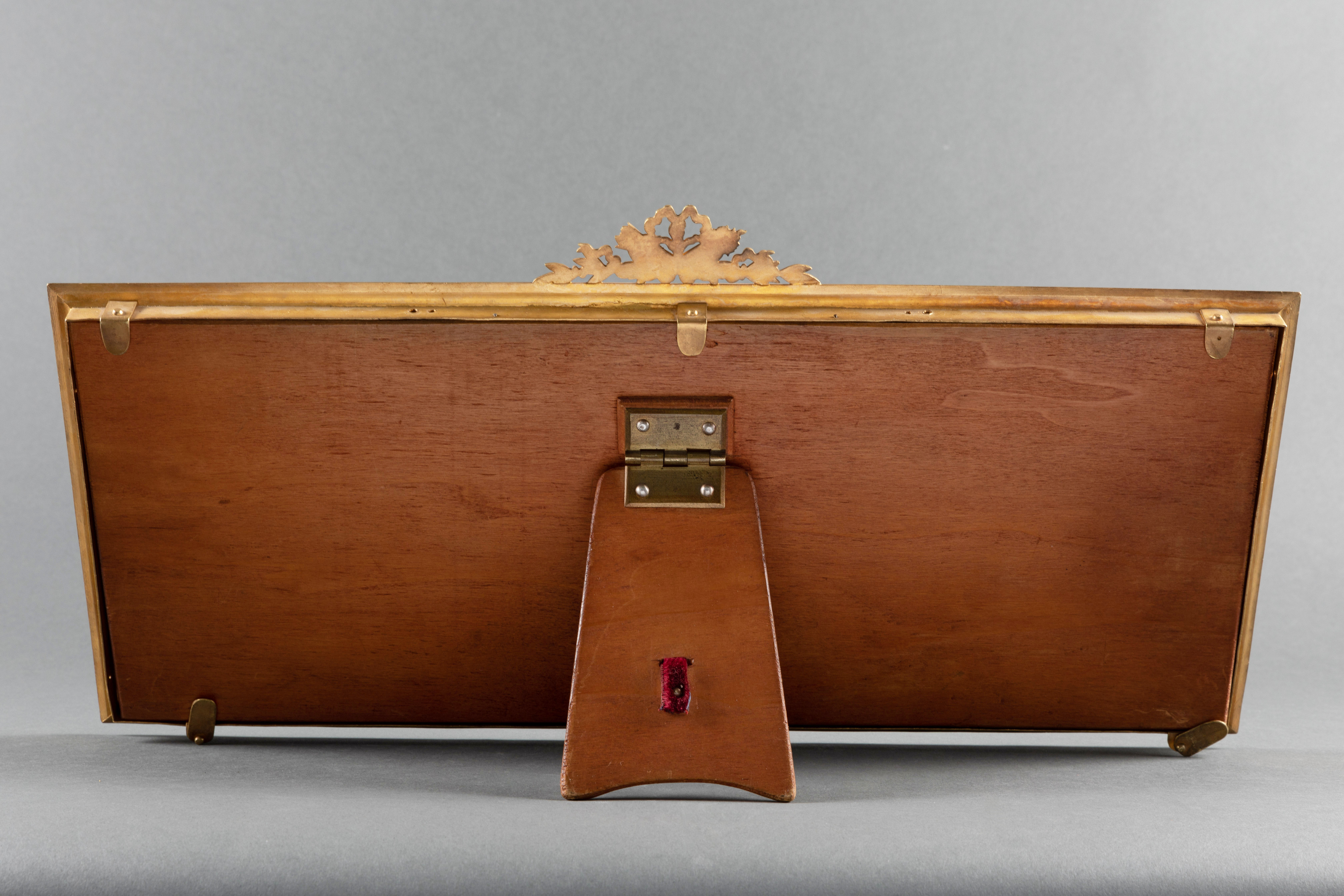 独角鹿西洋古董摆件19世纪末法国帝政风格铜鎏金镶嵌桃花心木相框