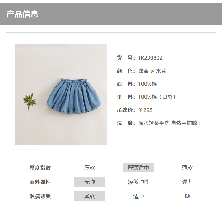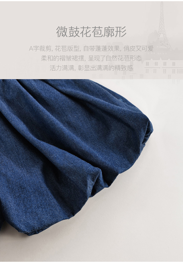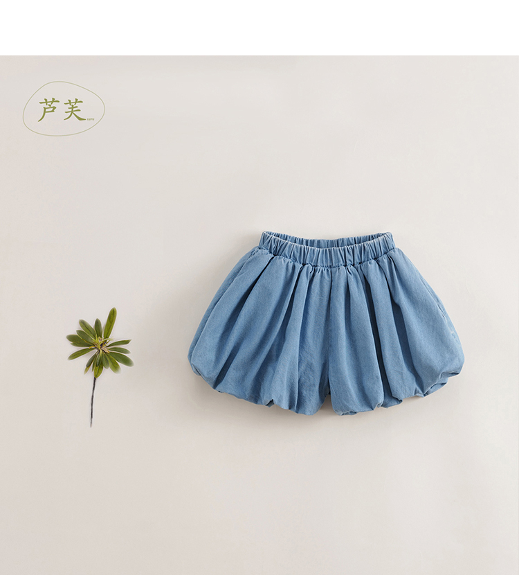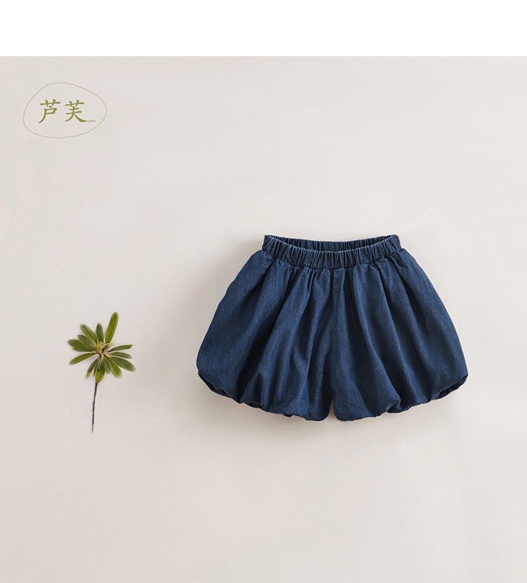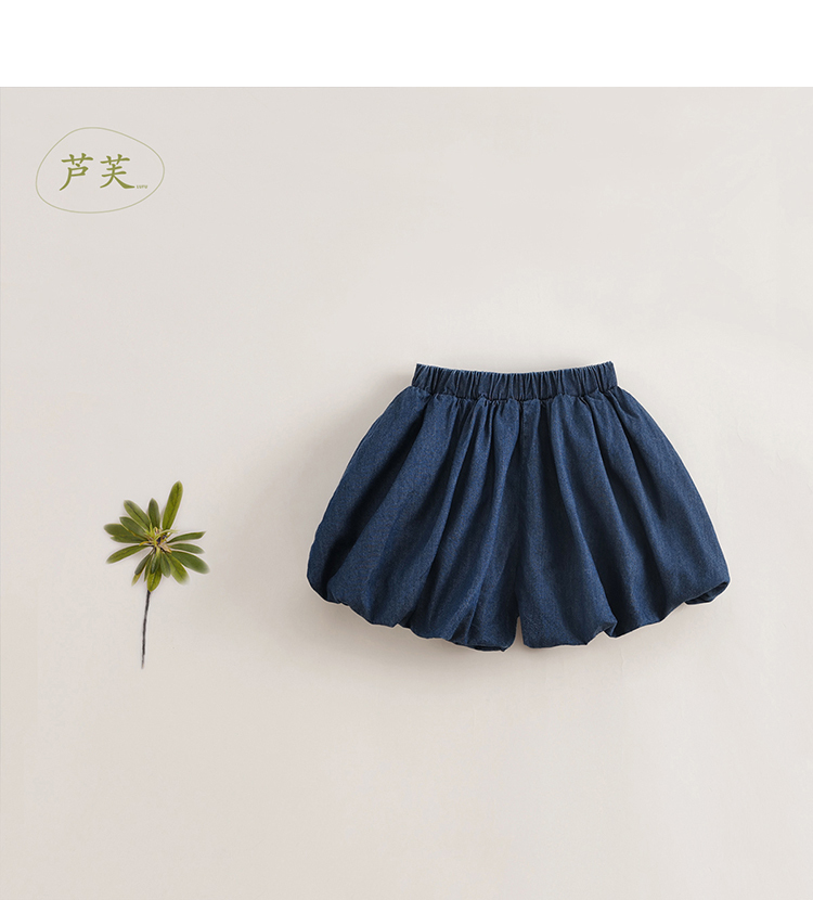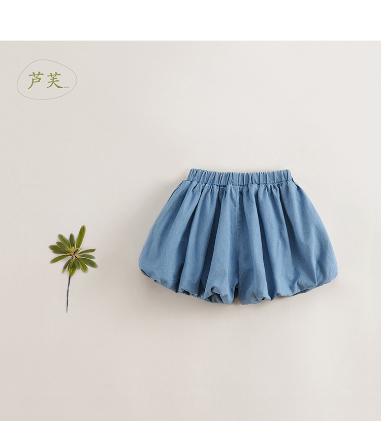 【马克珍妮 芦芙】夏装新款 女童微鼓花苞纯棉牛仔短裤230802