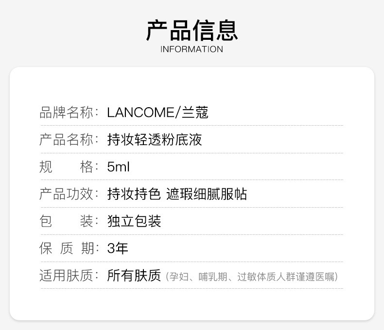 【专柜小样】法国LANCOME兰蔻 持妆粉底液 5ml