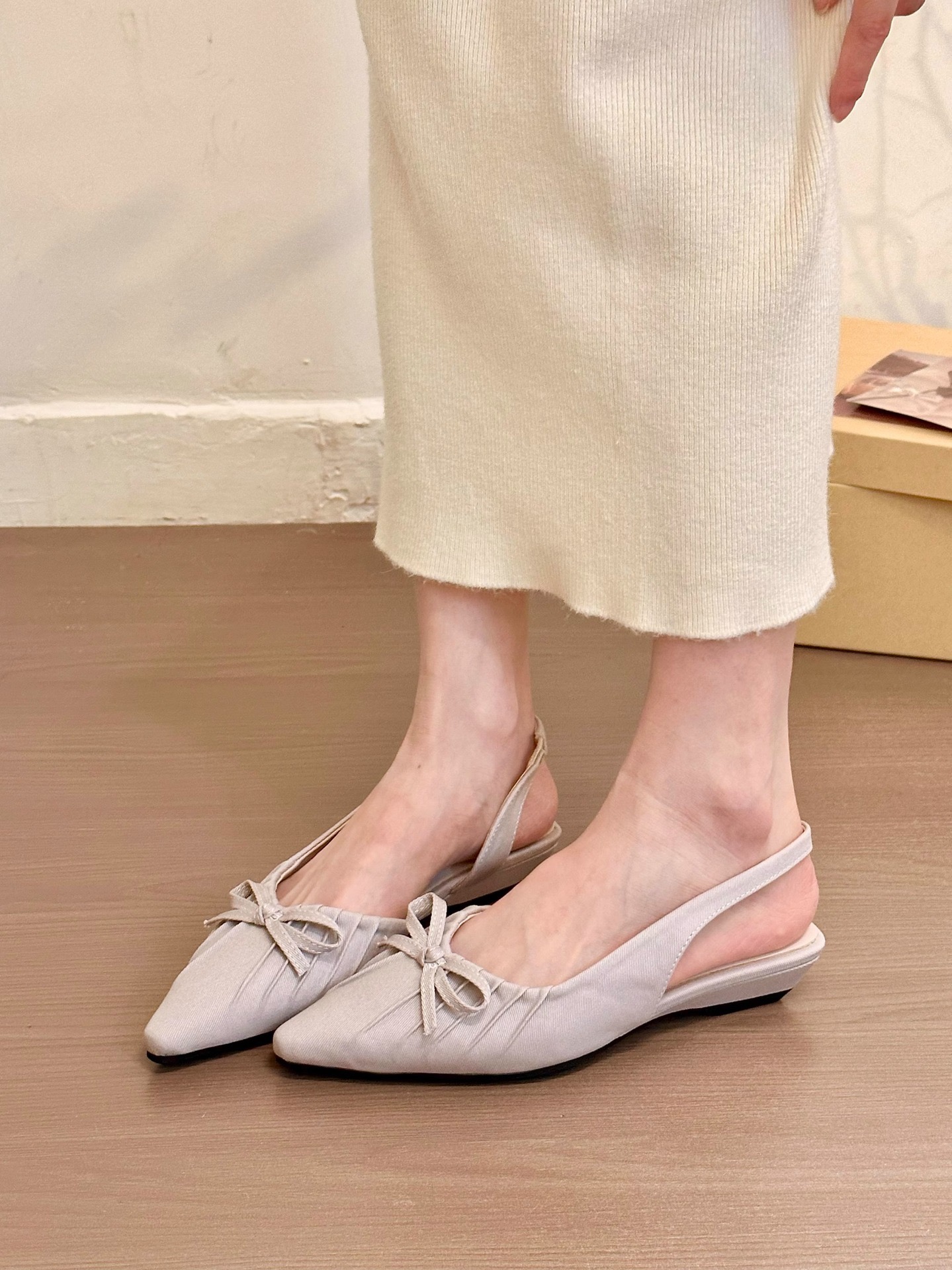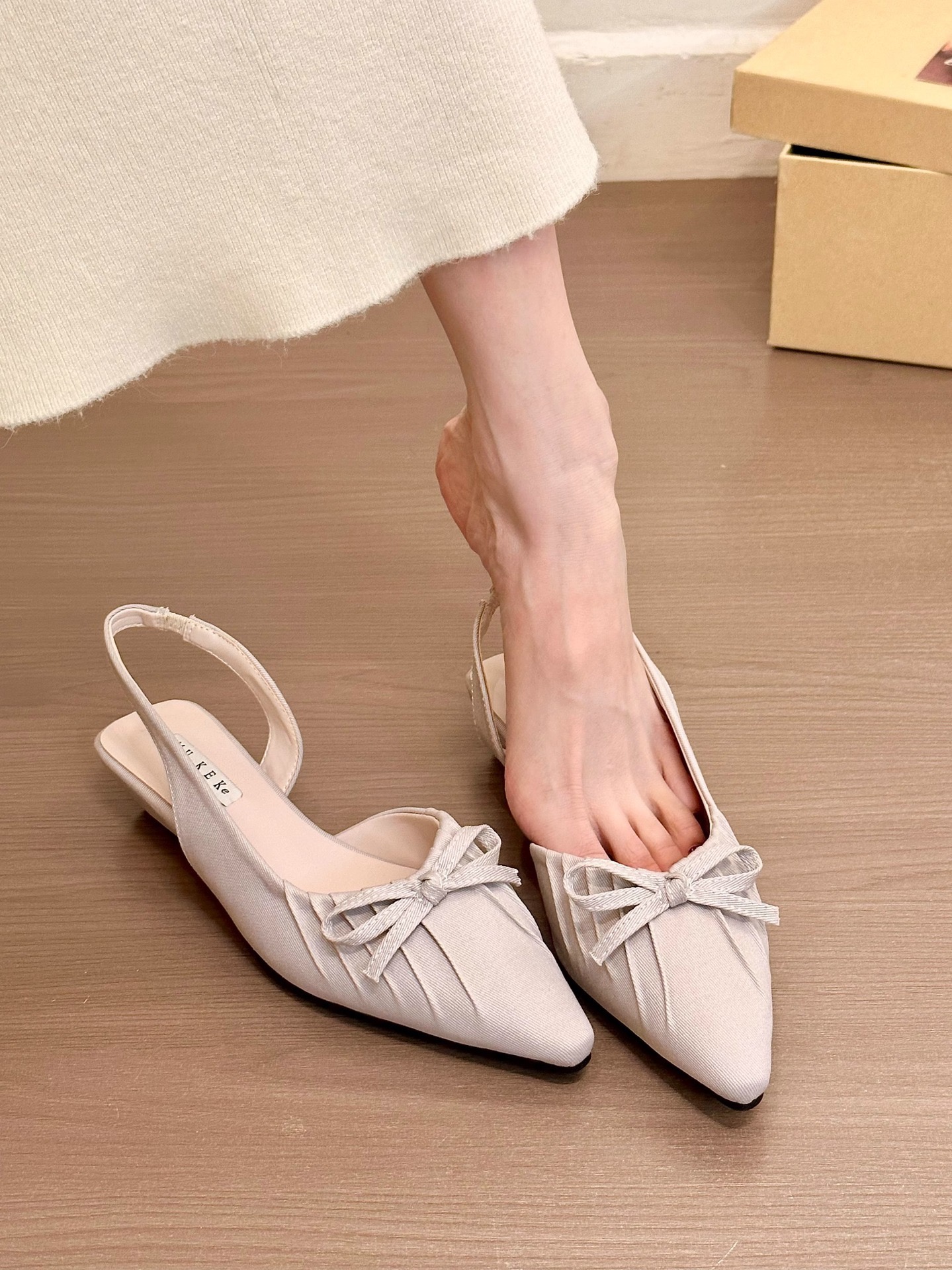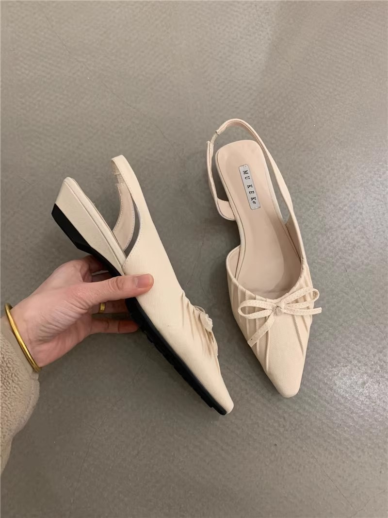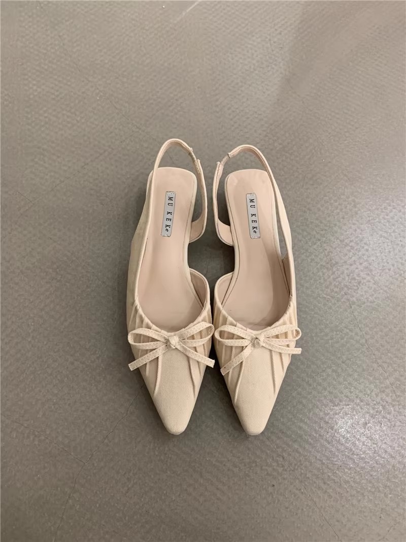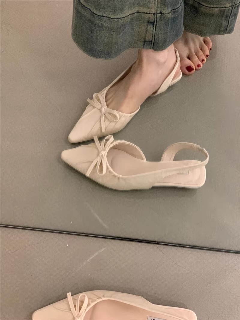 【YW】无忧购法式小众温柔绸缎蝴蝶结尖头浅口包头晚晚单鞋2026(截单后7天发货)