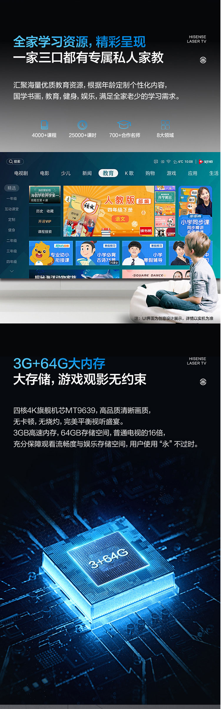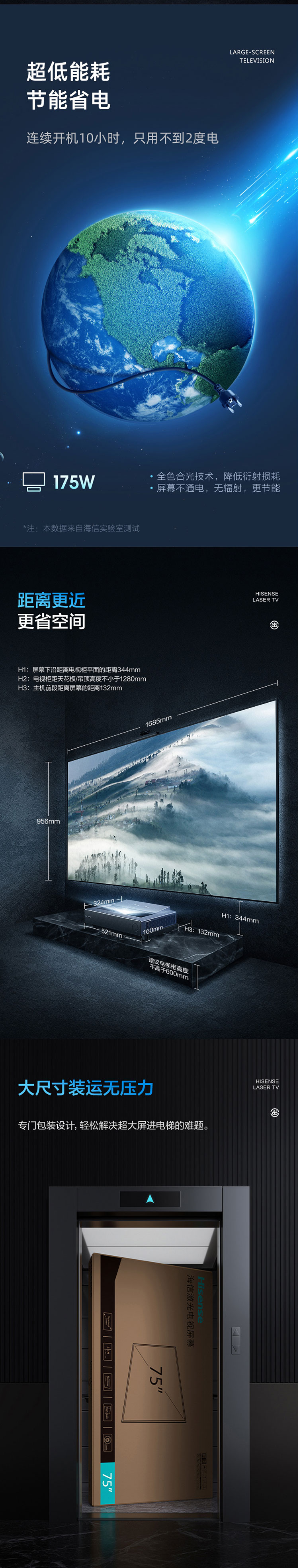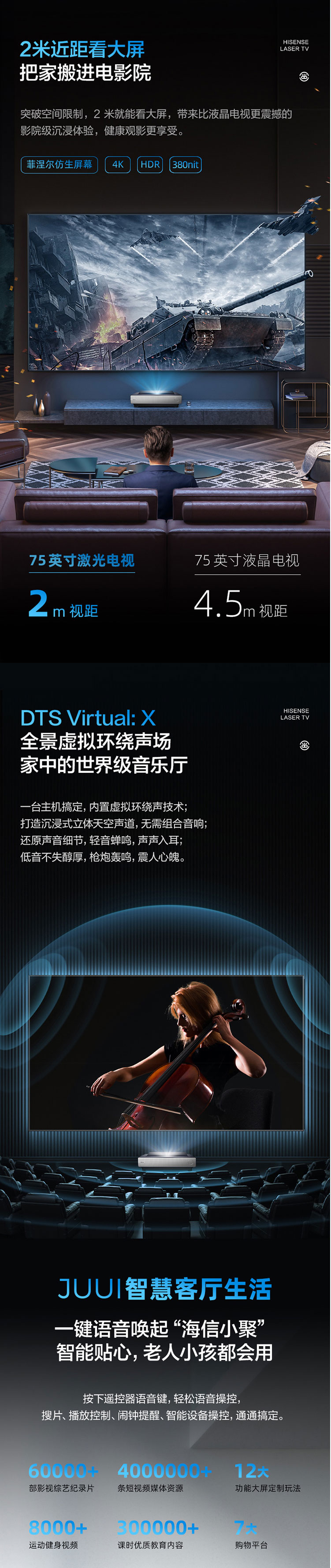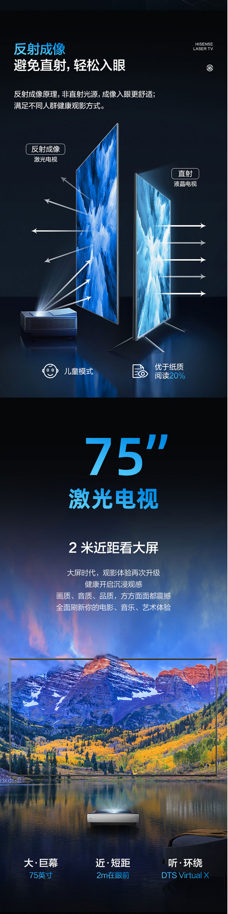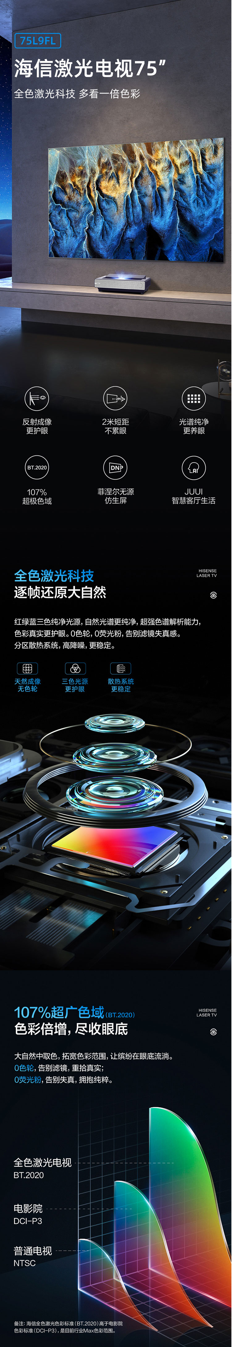 海信(912424)激光电视 75L9FL 75英寸 205%高色域 健康护眼 3D全景声 64GB 4K超高清