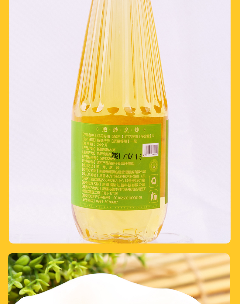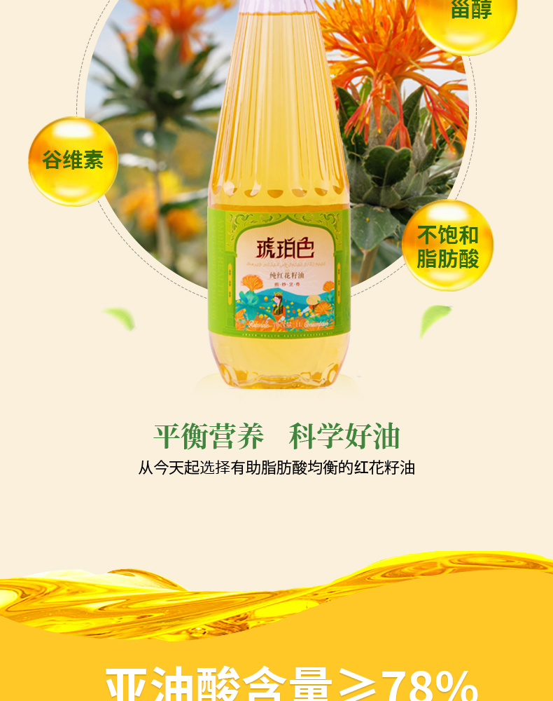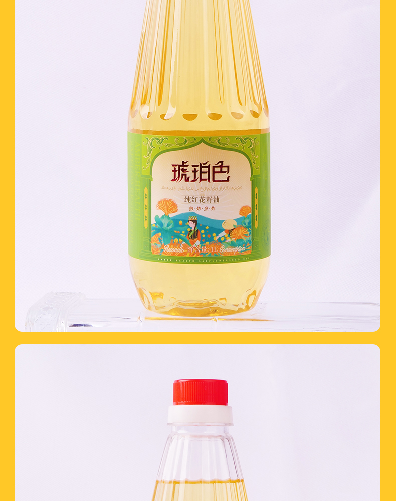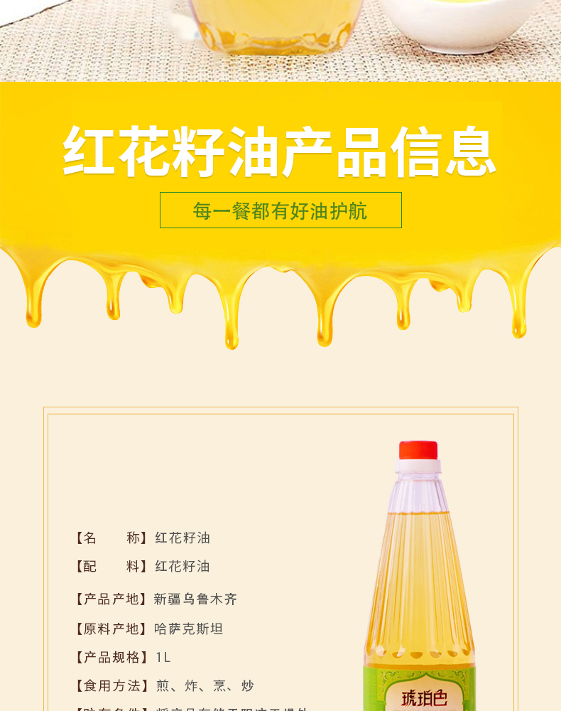 【新疆外运】琥珀色1LPET桶装纯红花籽油