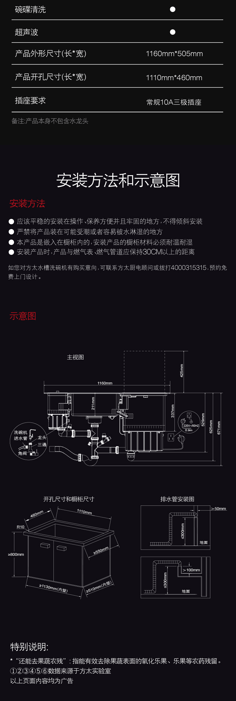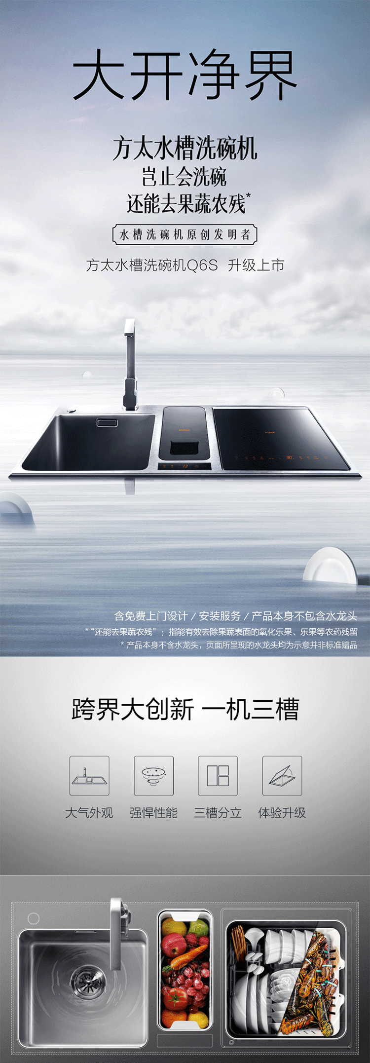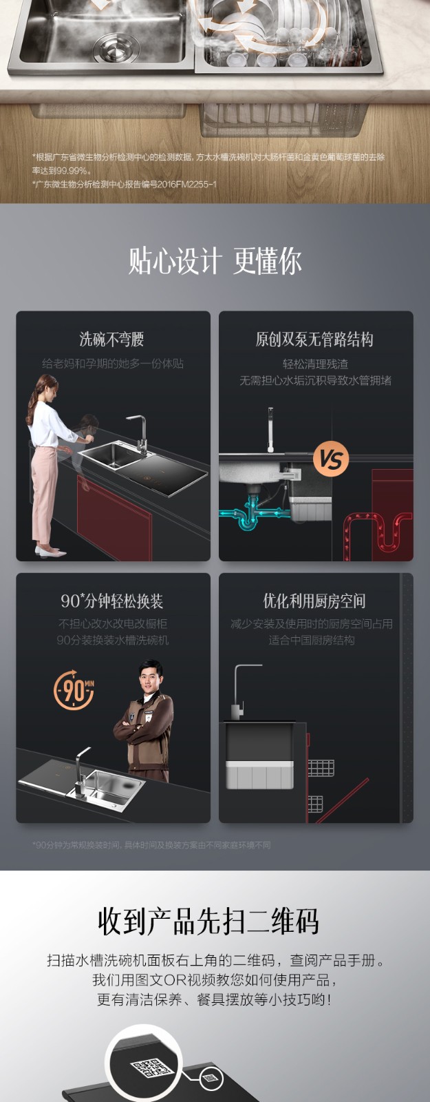 方太水槽洗碗机家用全自动嵌入式超声波洗碗洗果蔬水槽式洗碗机单品