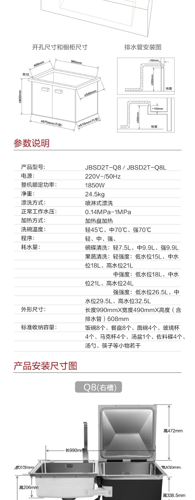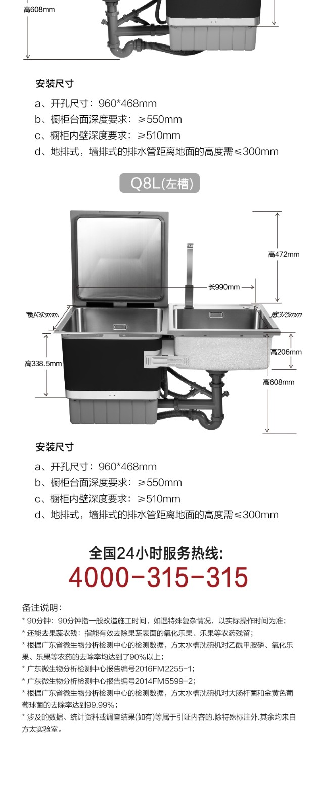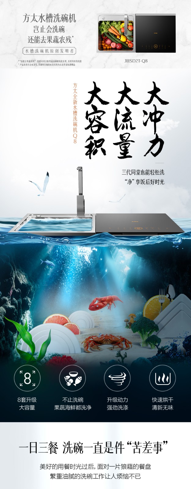 方太水槽洗碗机家用全自动嵌入式超声波洗碗洗果蔬水槽式洗碗机单品