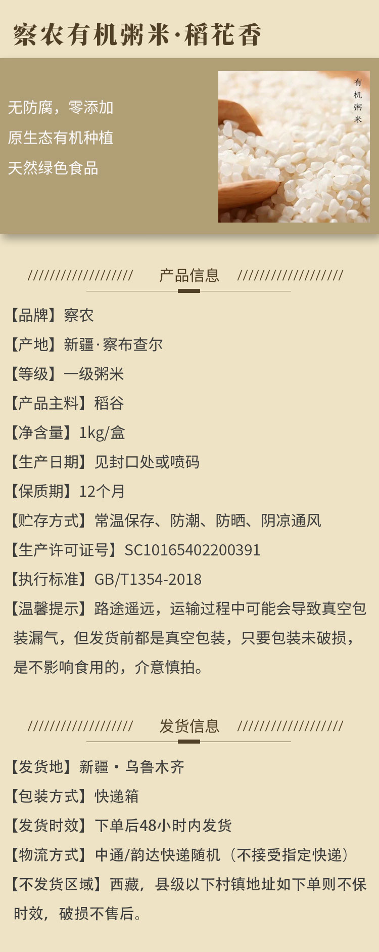 【产品名称】有机粥米