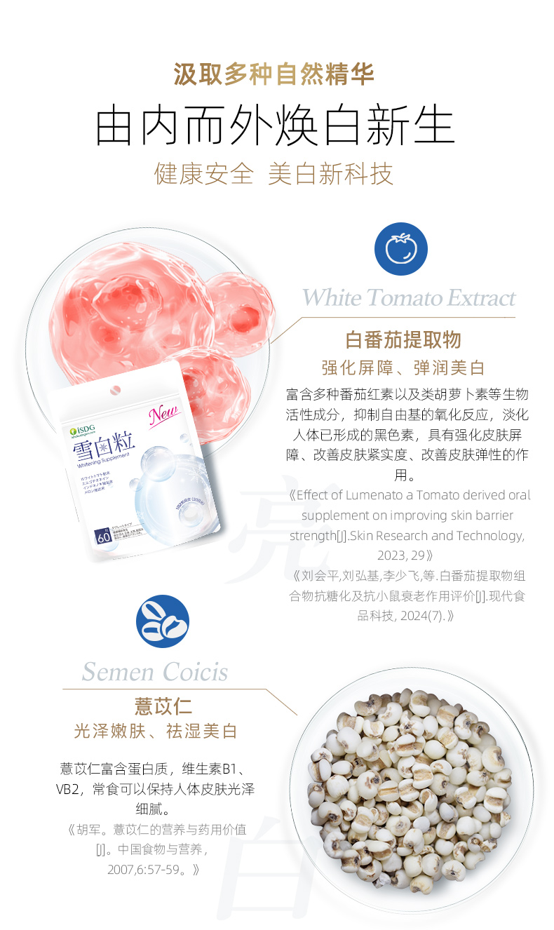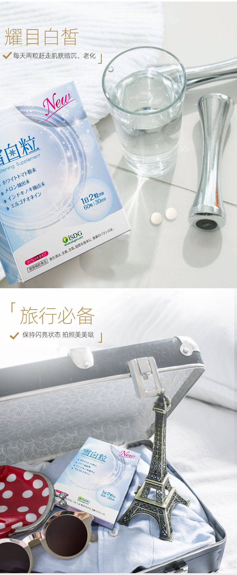 【品牌直营】ISDG 沈梦辰同款 我是大美人推荐 焕新上架日本进口雪白粒美白丸 60粒/袋 效期2027-10-28