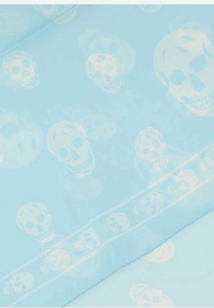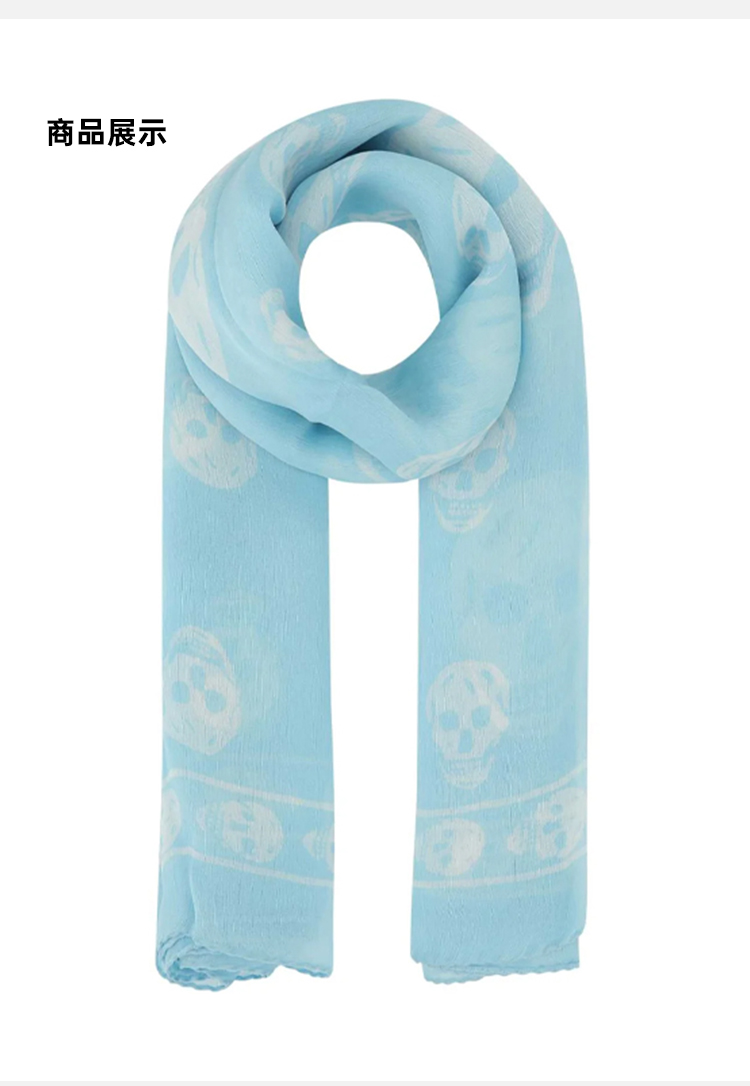 ALEXANDER MCQUEEN 亚历山大.麦昆 女士骷髅印花真丝围巾 浅蓝色 557717 3052Q 3977