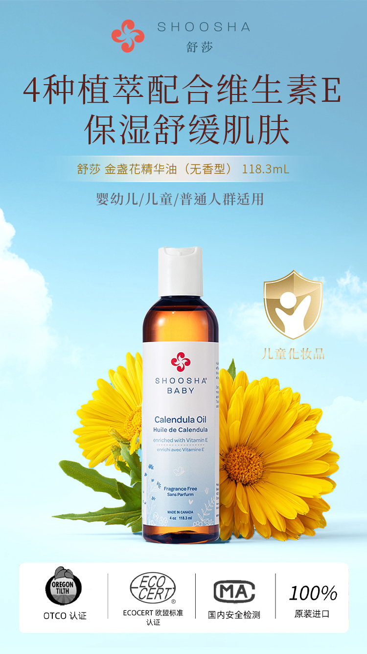 舒莎 金盏花精华油(无香型) 118.3mL 加拿大进口 854220001282