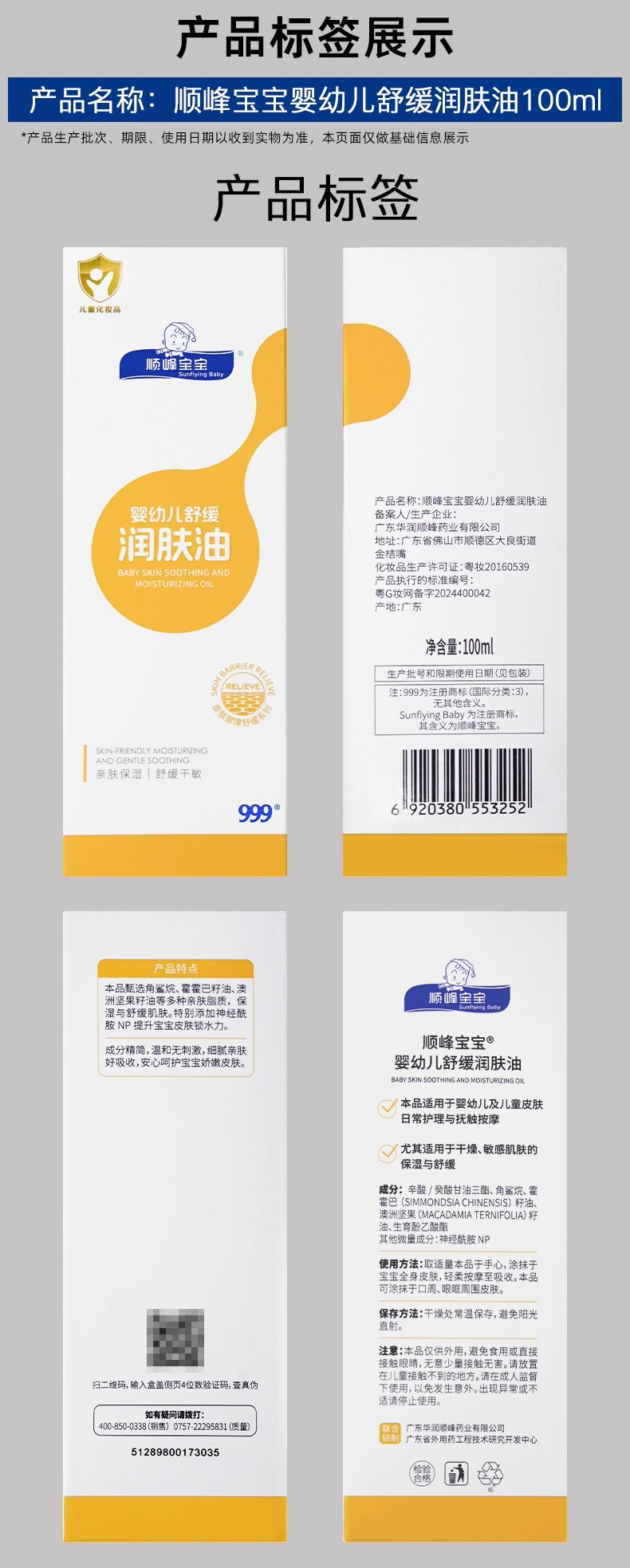 顺峰宝宝婴幼儿舒缓润肤油100ml