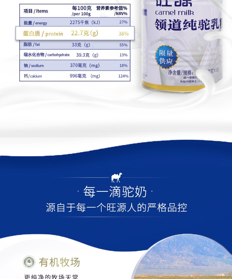 【包邮】旺源初乳领道纯驼乳粉300g/罐