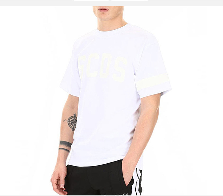 GCDS 男士字母徽标印花棉质圆领短袖T恤 白色 ACC94U020073 WHITE