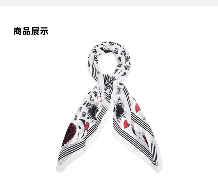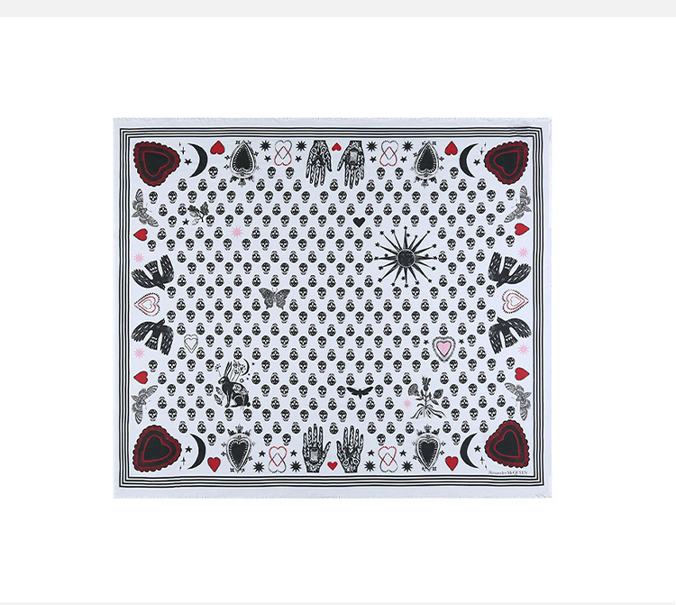 ALEXANDER MCQUEEN 亚历山大麦昆 黑骷髅爱心星月 女士围巾 混色 665607 3418Q 9260