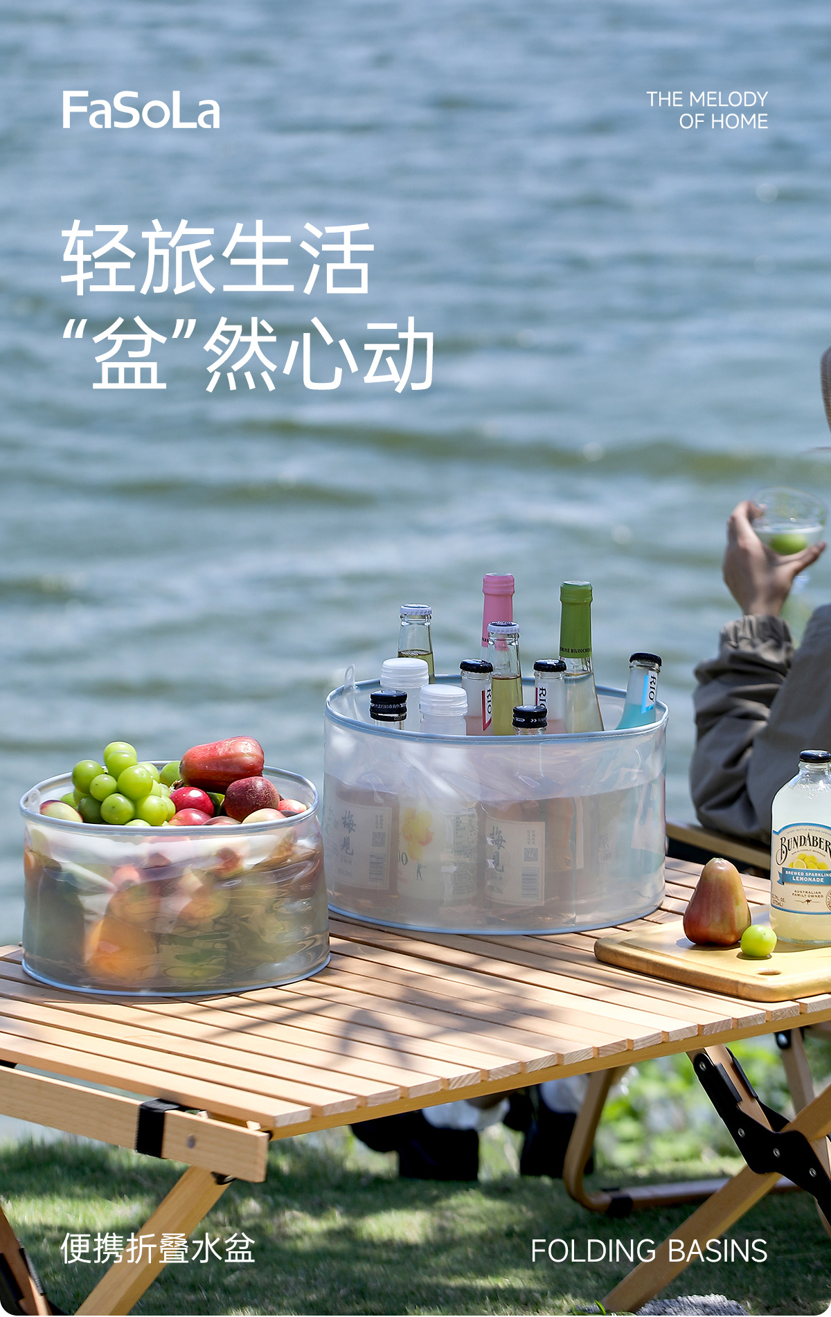 FaSoLa可折叠水盆旅行户外出差洗脸盆洗漱洗衣盆大号便携折叠水盆