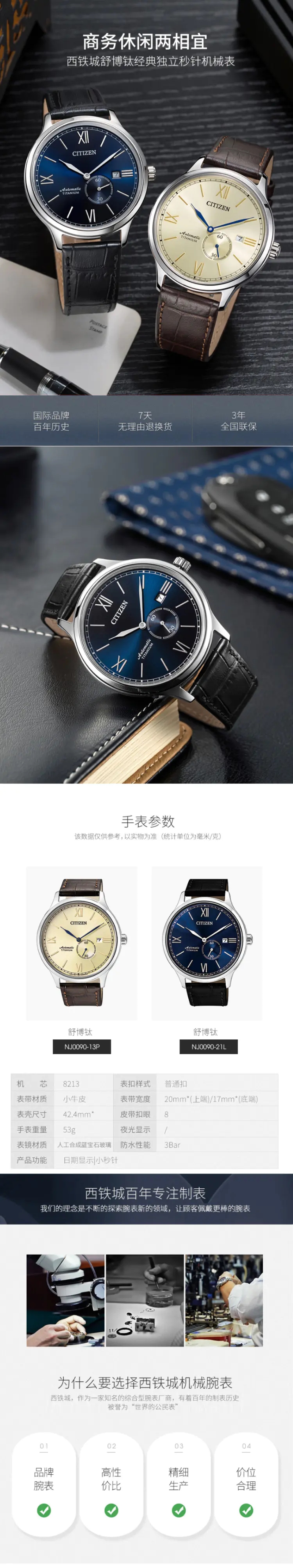 西铁城CITIZEN舒博钛小牛皮机械表NJ0090-21L