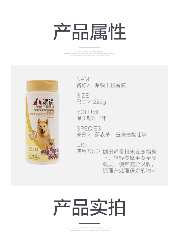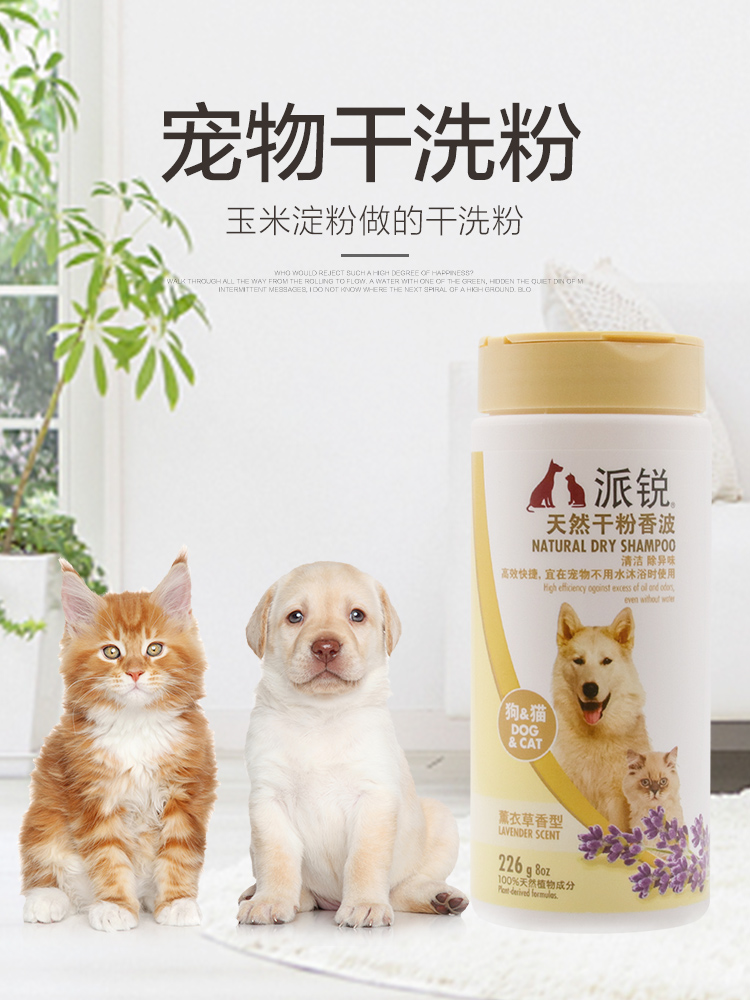 派锐薰衣草味干粉香波猫咪沐浴清洁免水洗226g狗狗