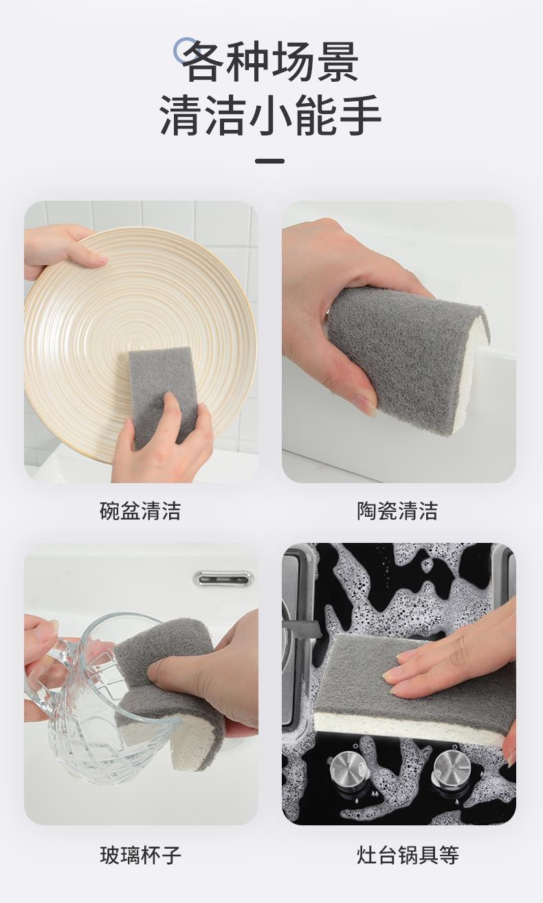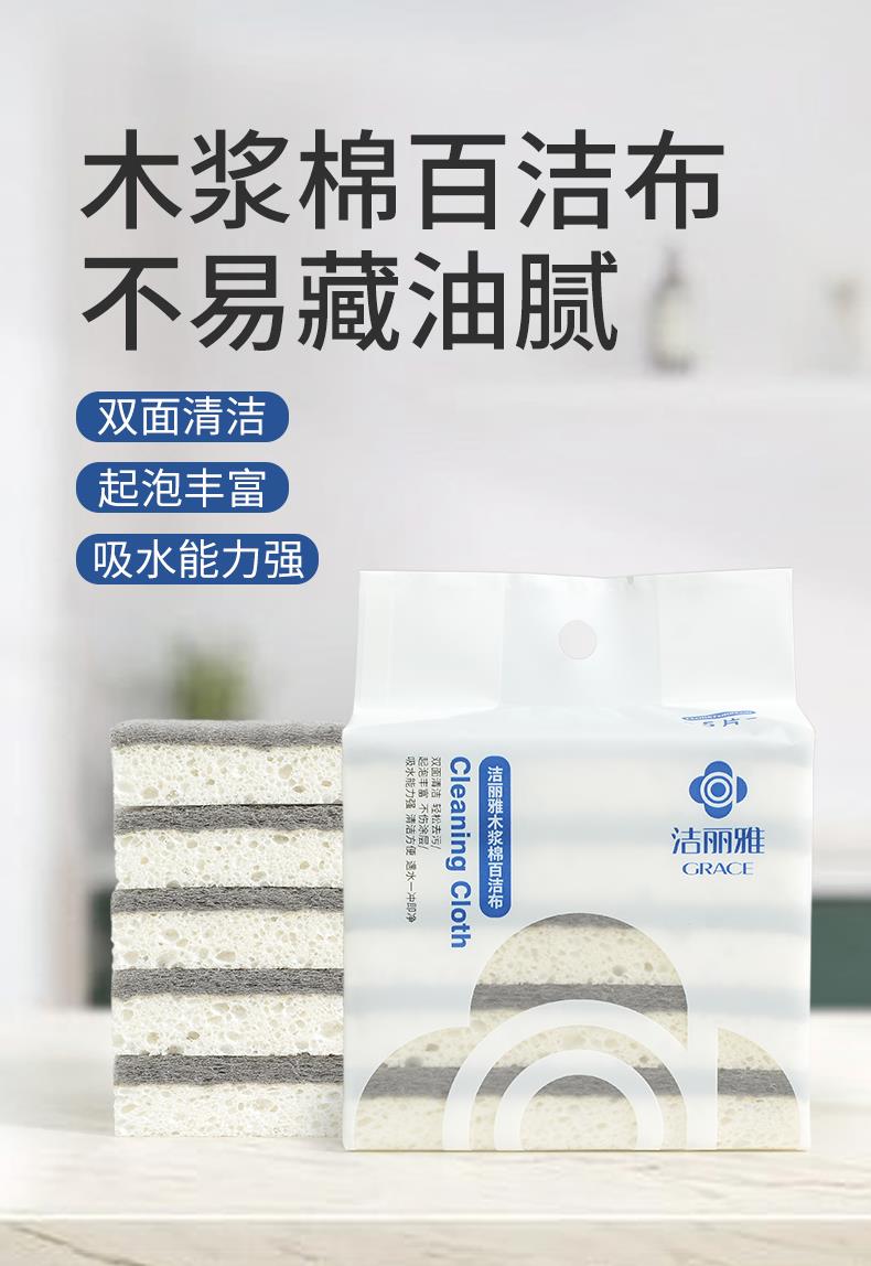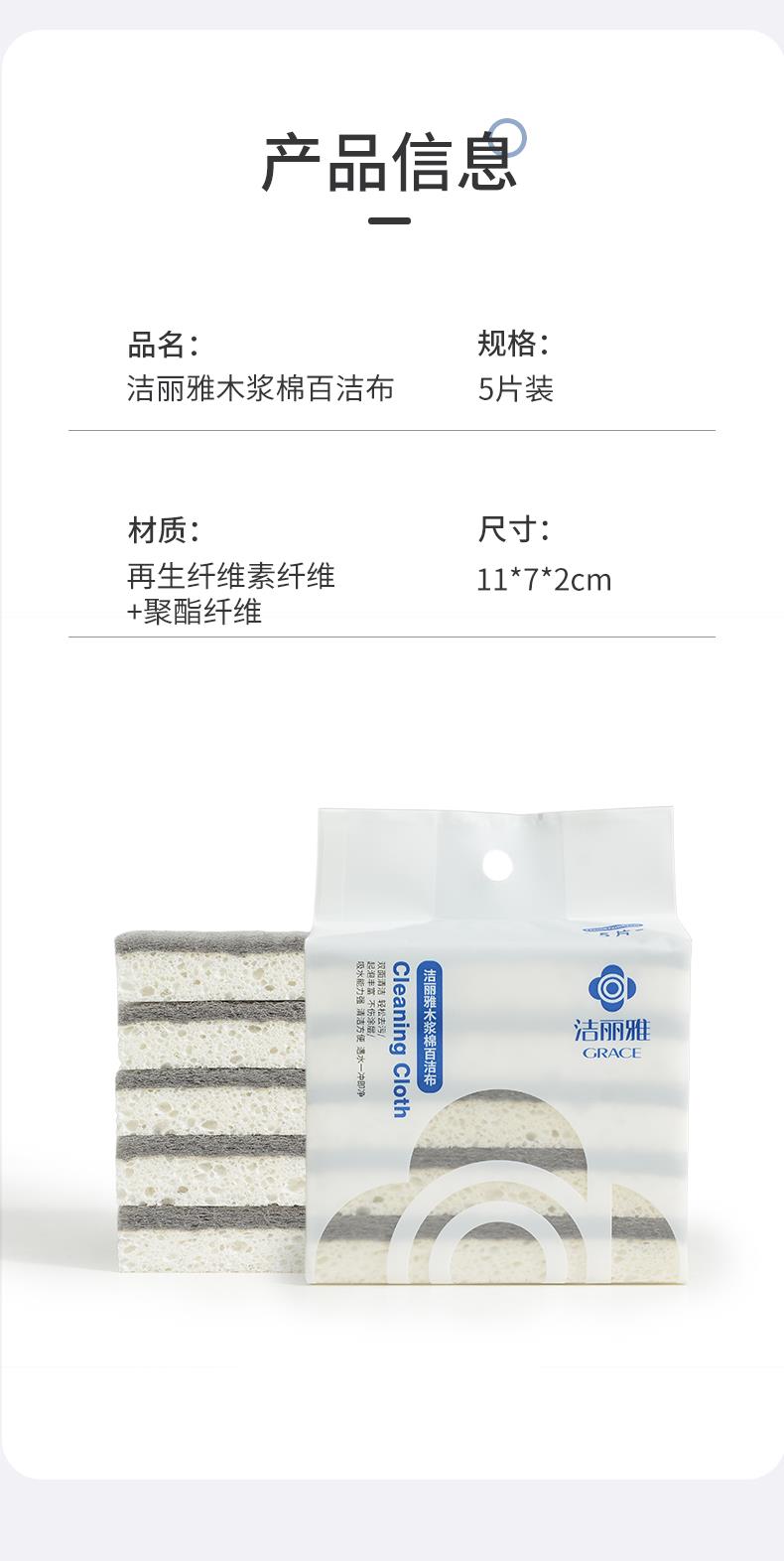 洁丽雅木浆棉百洁布双面厨房专用洗碗神器加厚款 去污不沾油(每包5片)